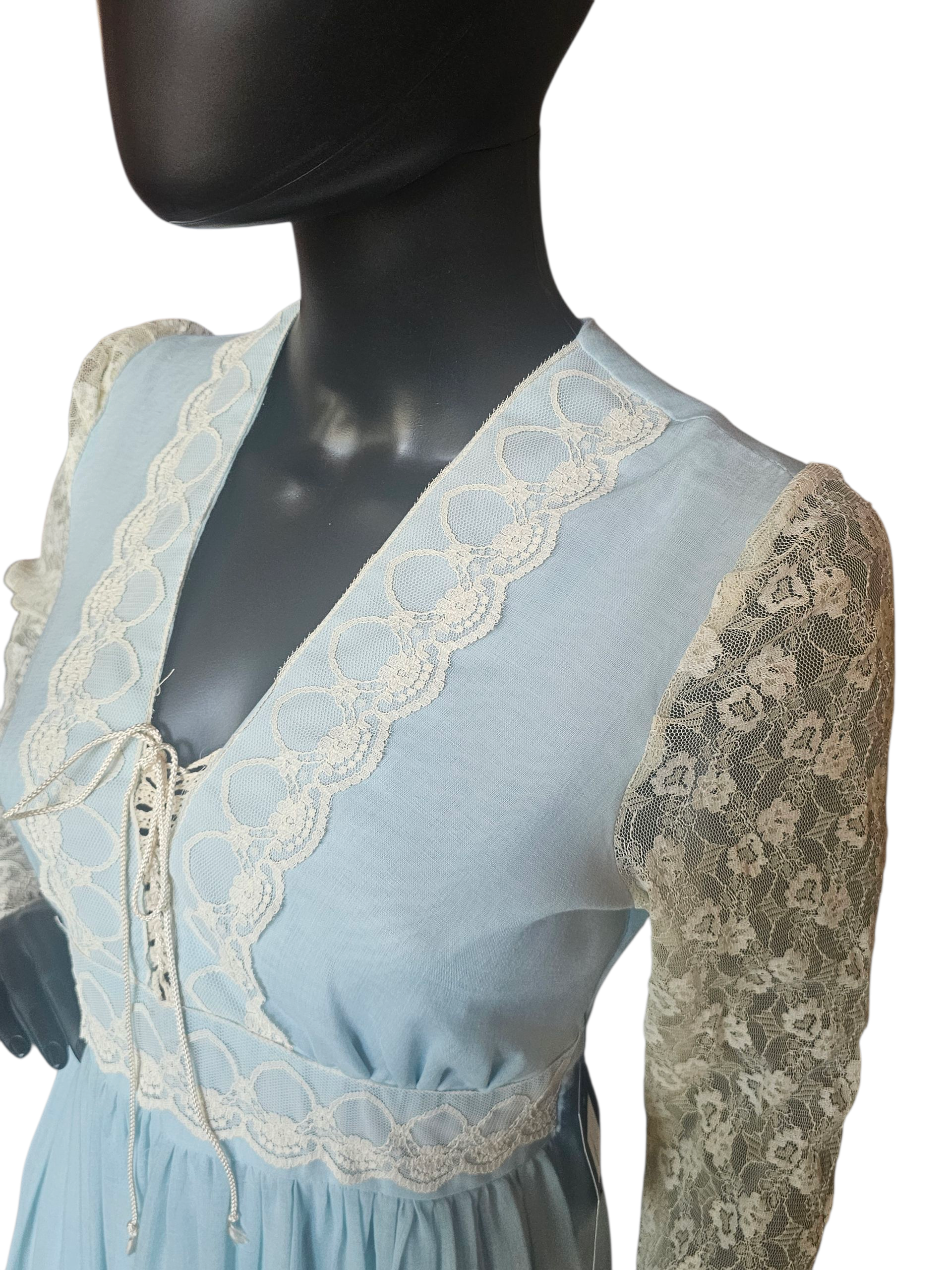 Vintage 70's Blue Prom Prairie Style Maxi Dress - Gunne Sax