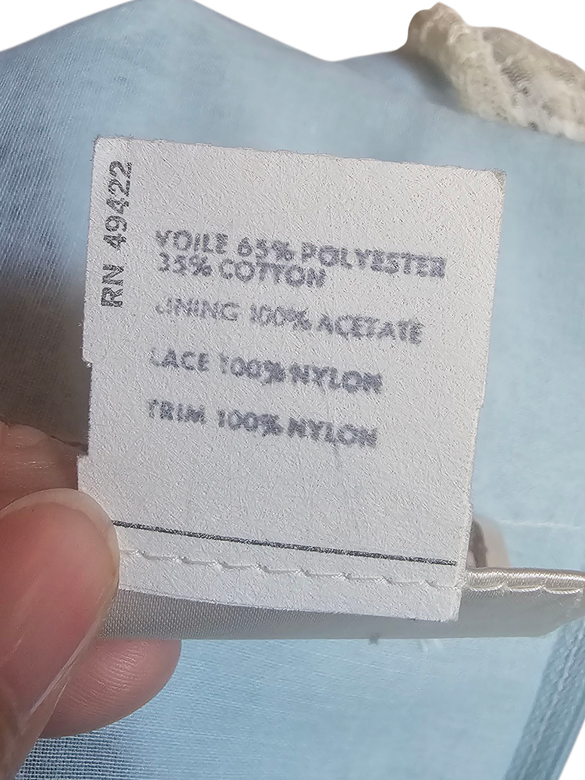 This vintage gown is a great way to have a unique outfit that brings history to life! The traditional lace lines the bodice and the illusion sleeves. The blue chiffon is pale, yet beautiful for an effortlessly stunning outfit. Wear this to a wedding, prom, or a girls lunch!