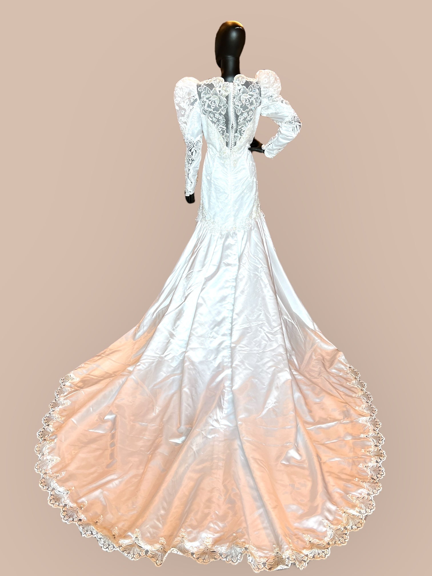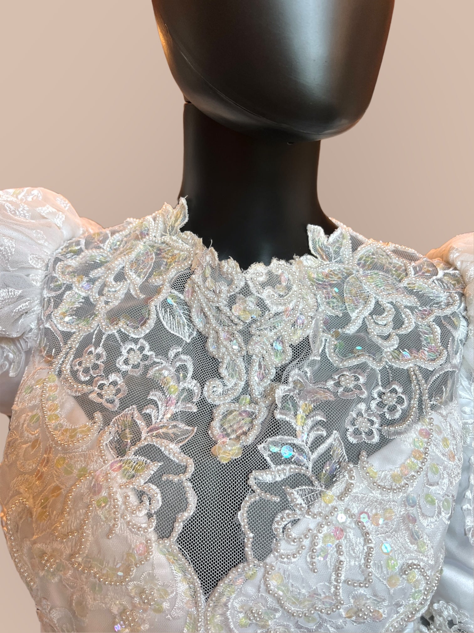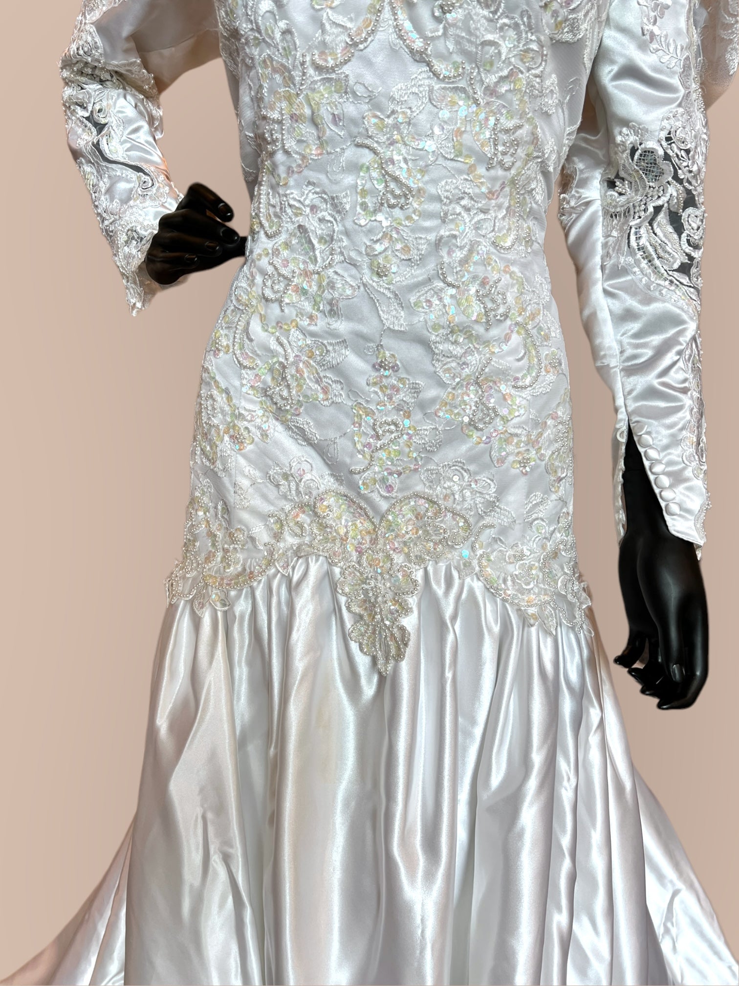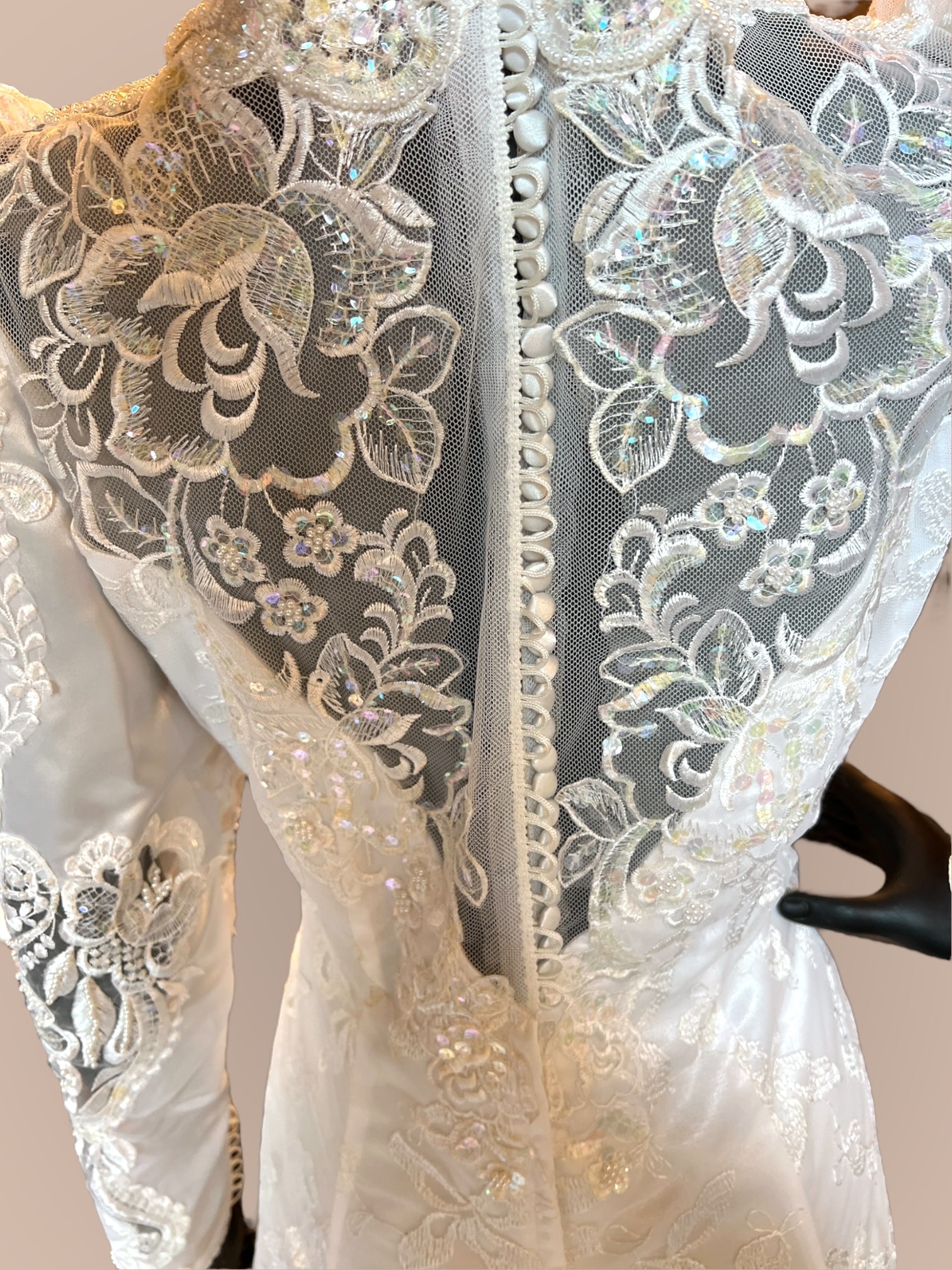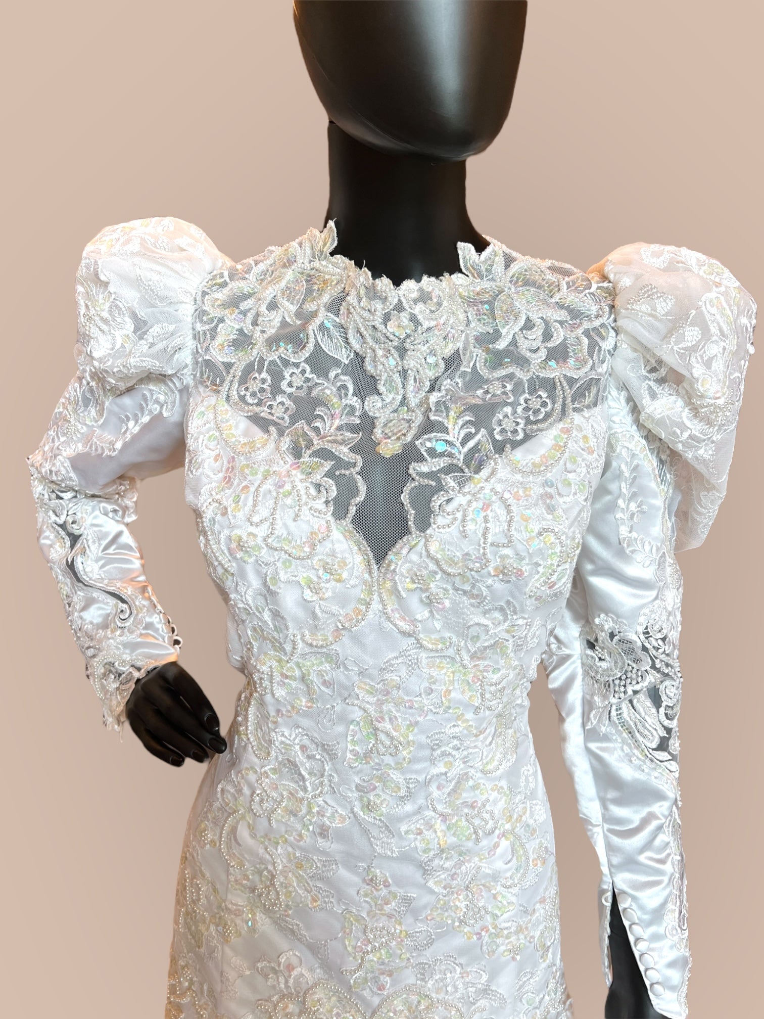 Vintage 90s Lace Sleeve High Neck Wedding Gown
