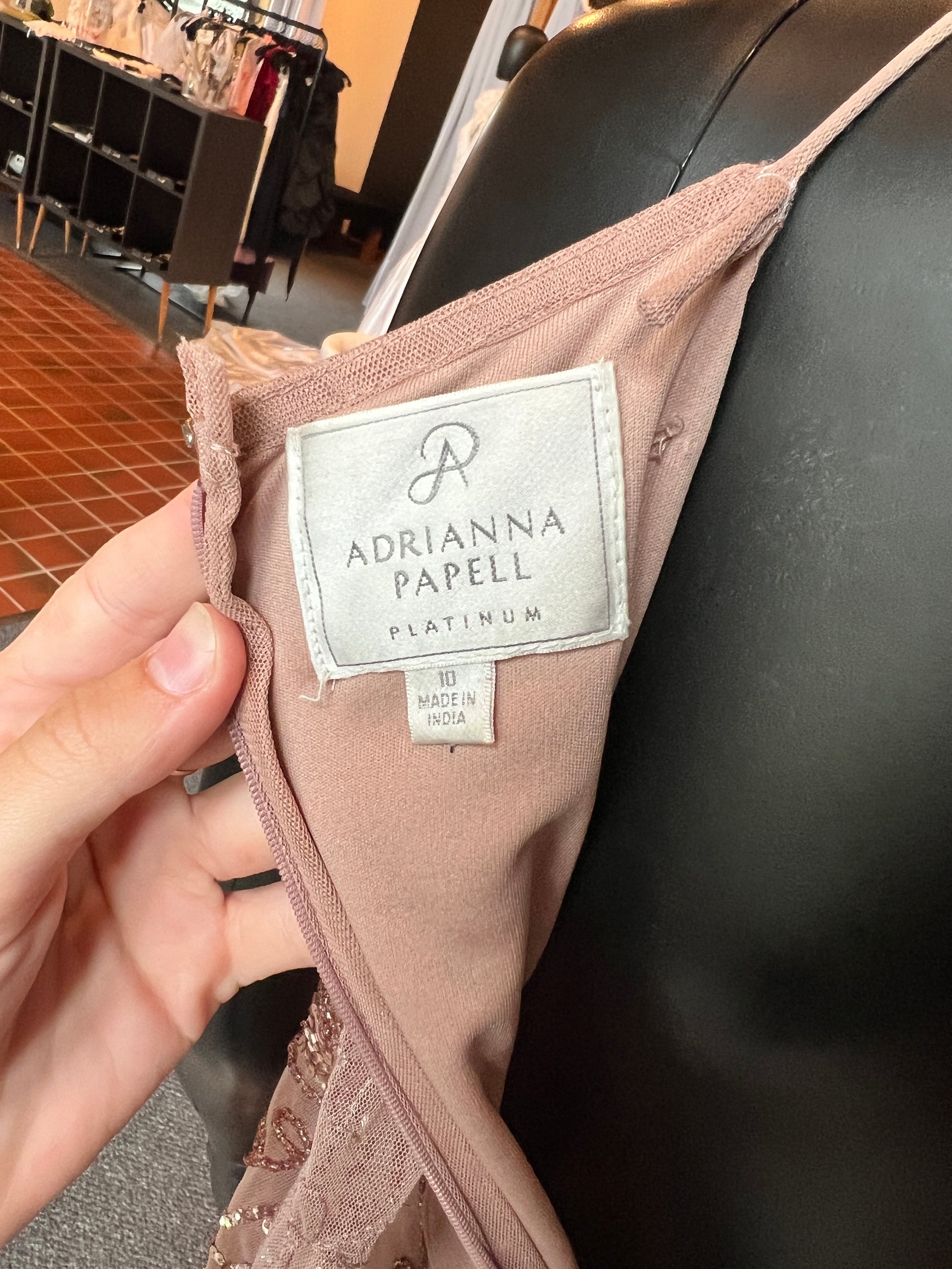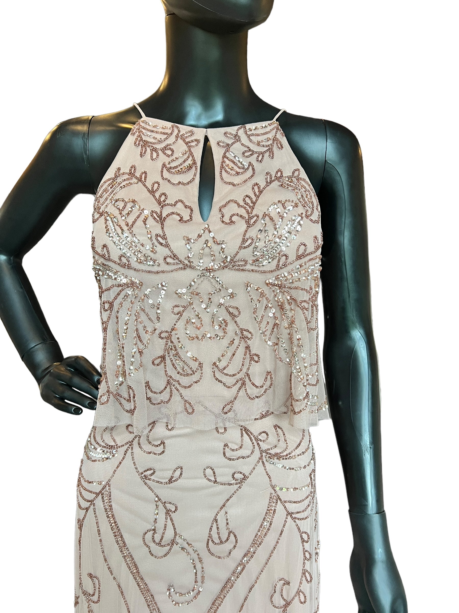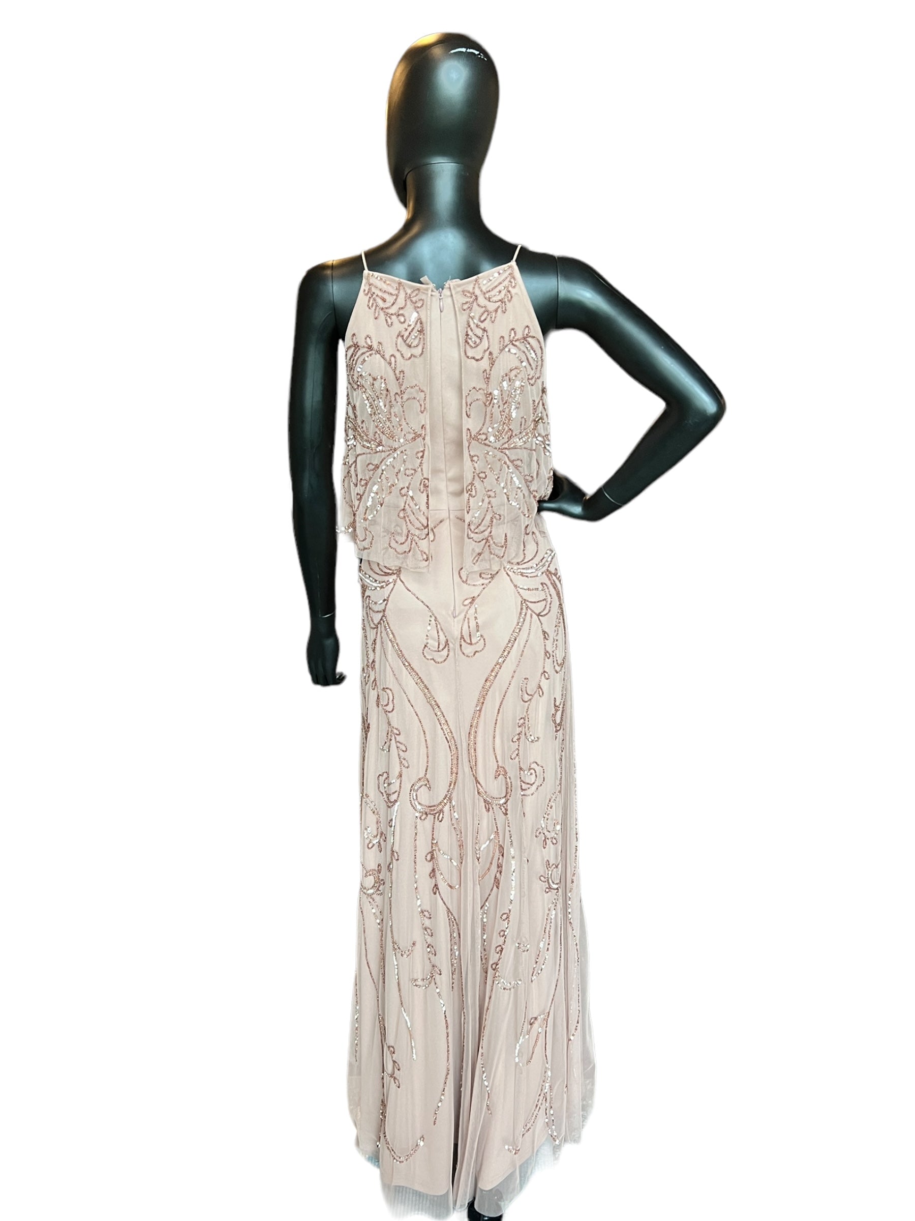 Adrianna Papell Rose Gold Beaded Formal Gown