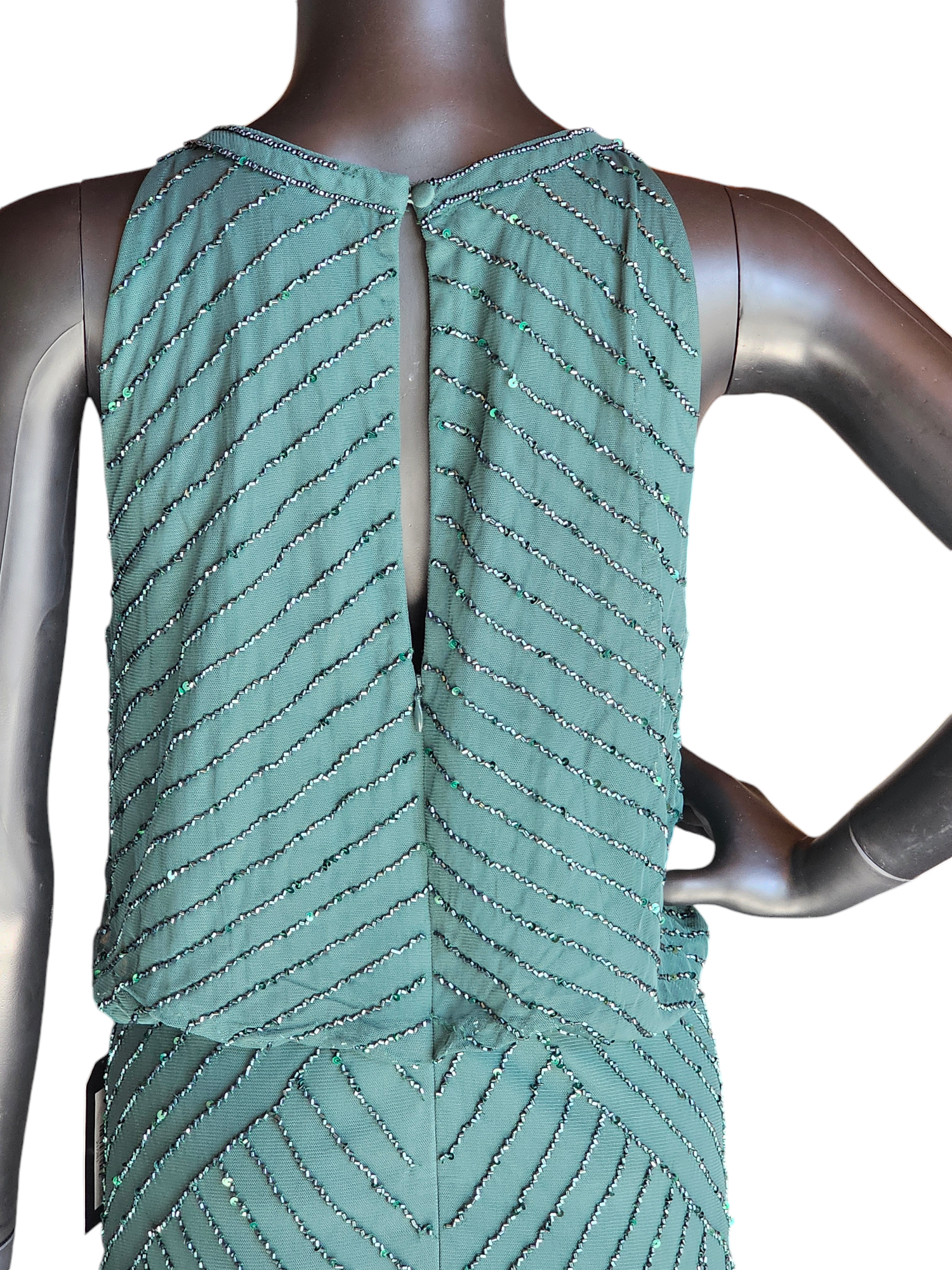 Adrianna Papell Forest Green Beaded Blouson Formal Gown