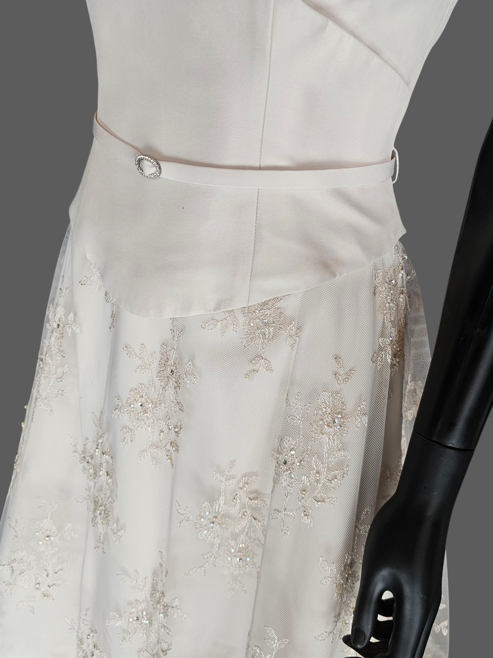 Antique Ivory 2-Piece V-Neck Lace Skirt - Essence