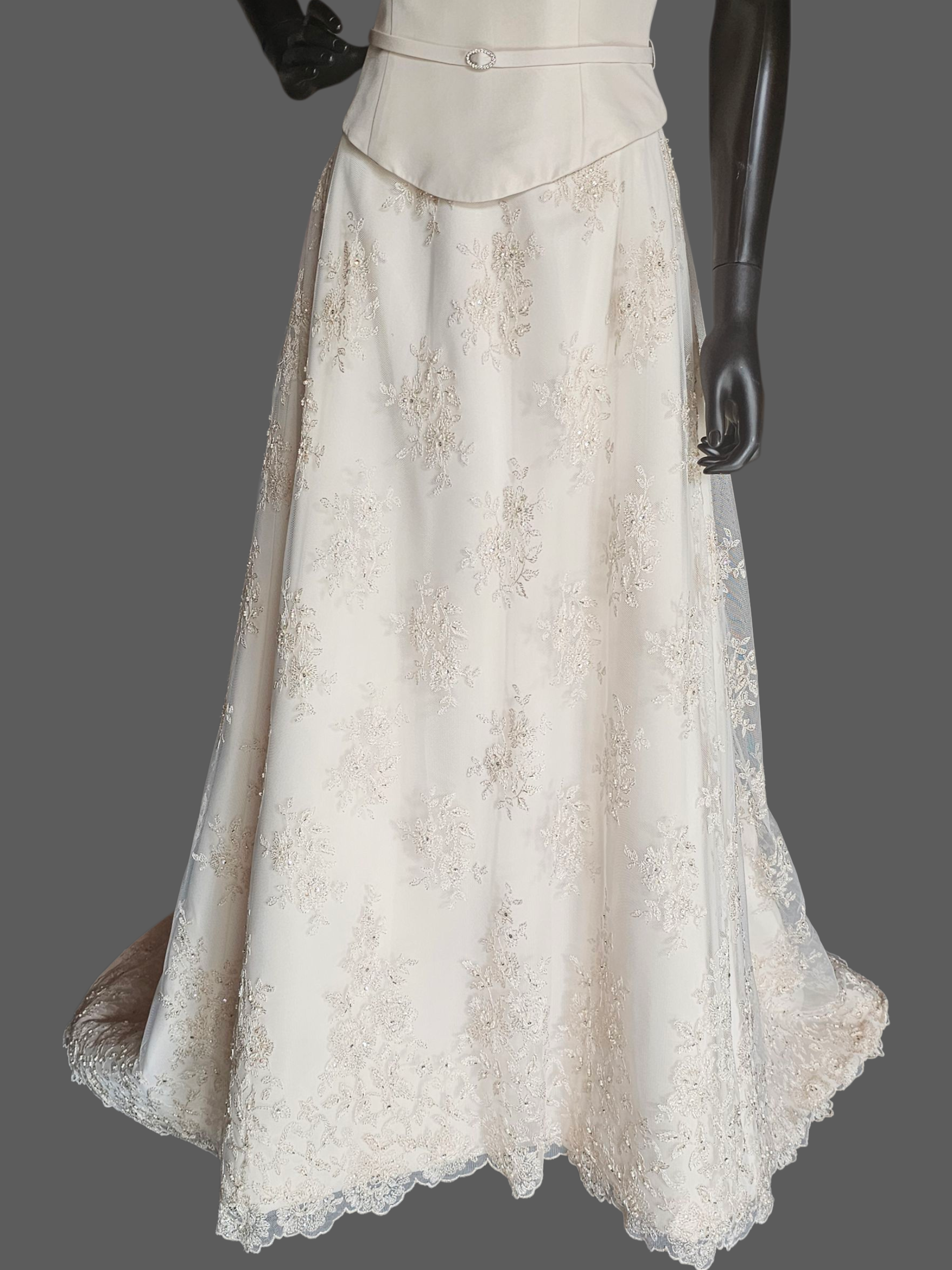 Antique Ivory 2-Piece V-Neck Lace Skirt Wedding Gown - Essence