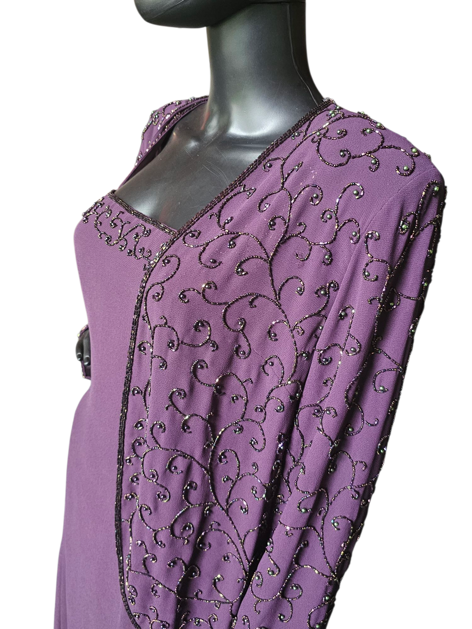 Aubergine Chiffon Beaded Maxi W/Jacket - Cameron Blake