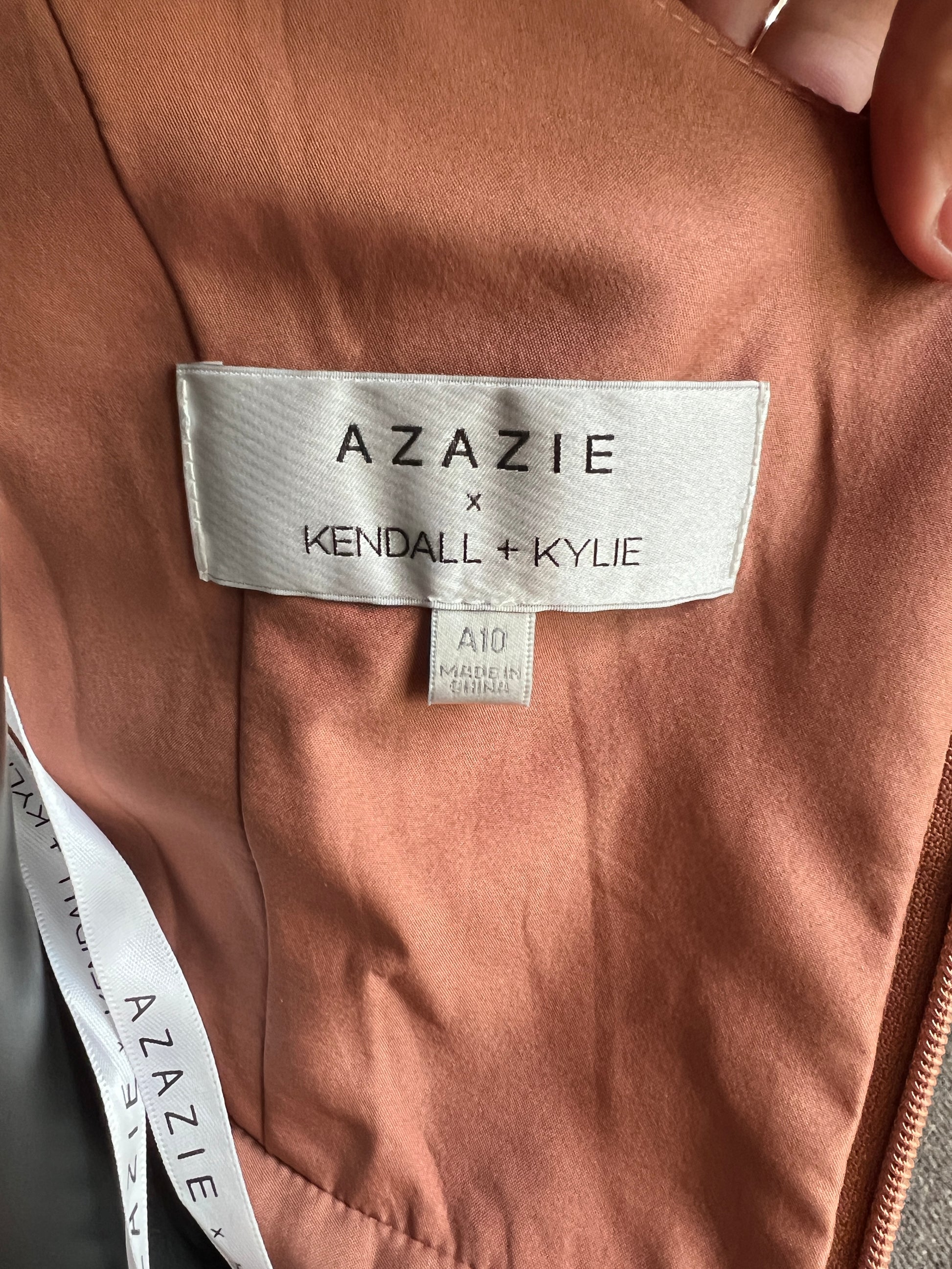 Azazi Rust Satin Scoop Neck Full Skirt Formal Gown