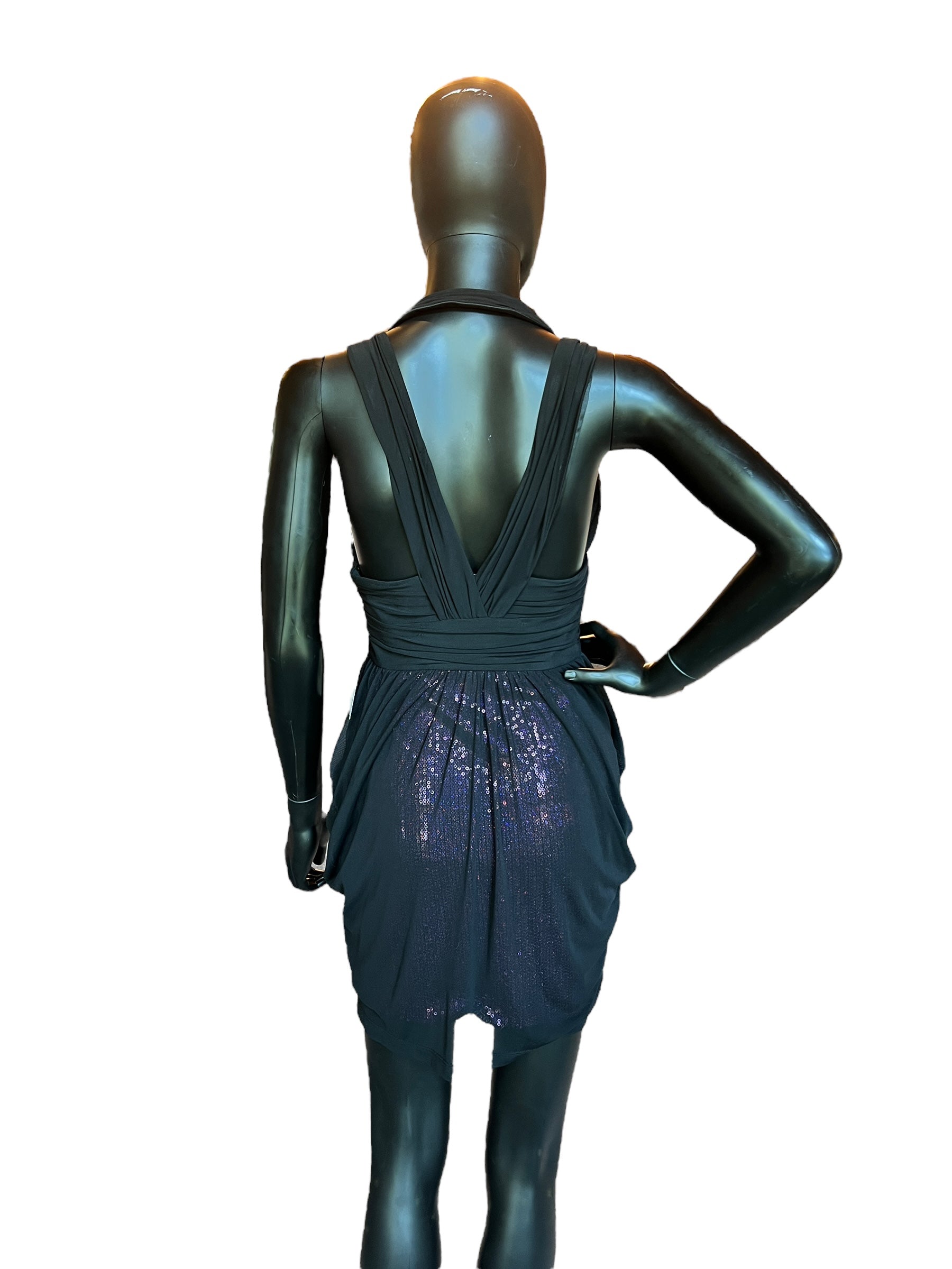 This black mini dress has hidden pink shimmers that sparkle in the light. The intricate layered straps are beautifully draped for an effortless look. Wear this lovely dress to prom or a semi-formal event!