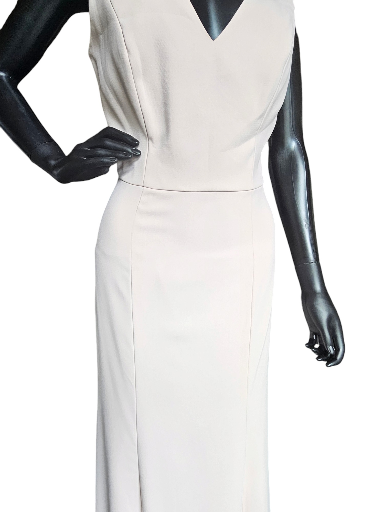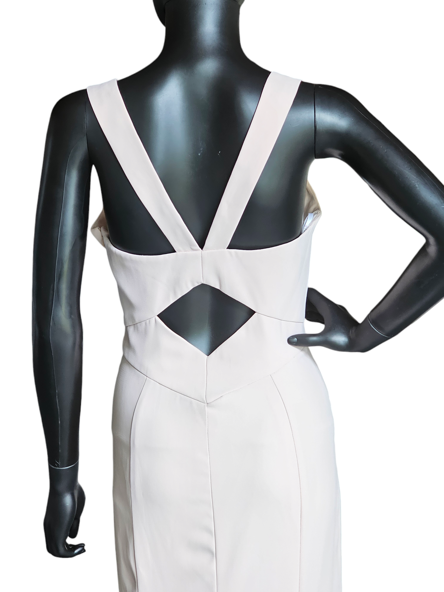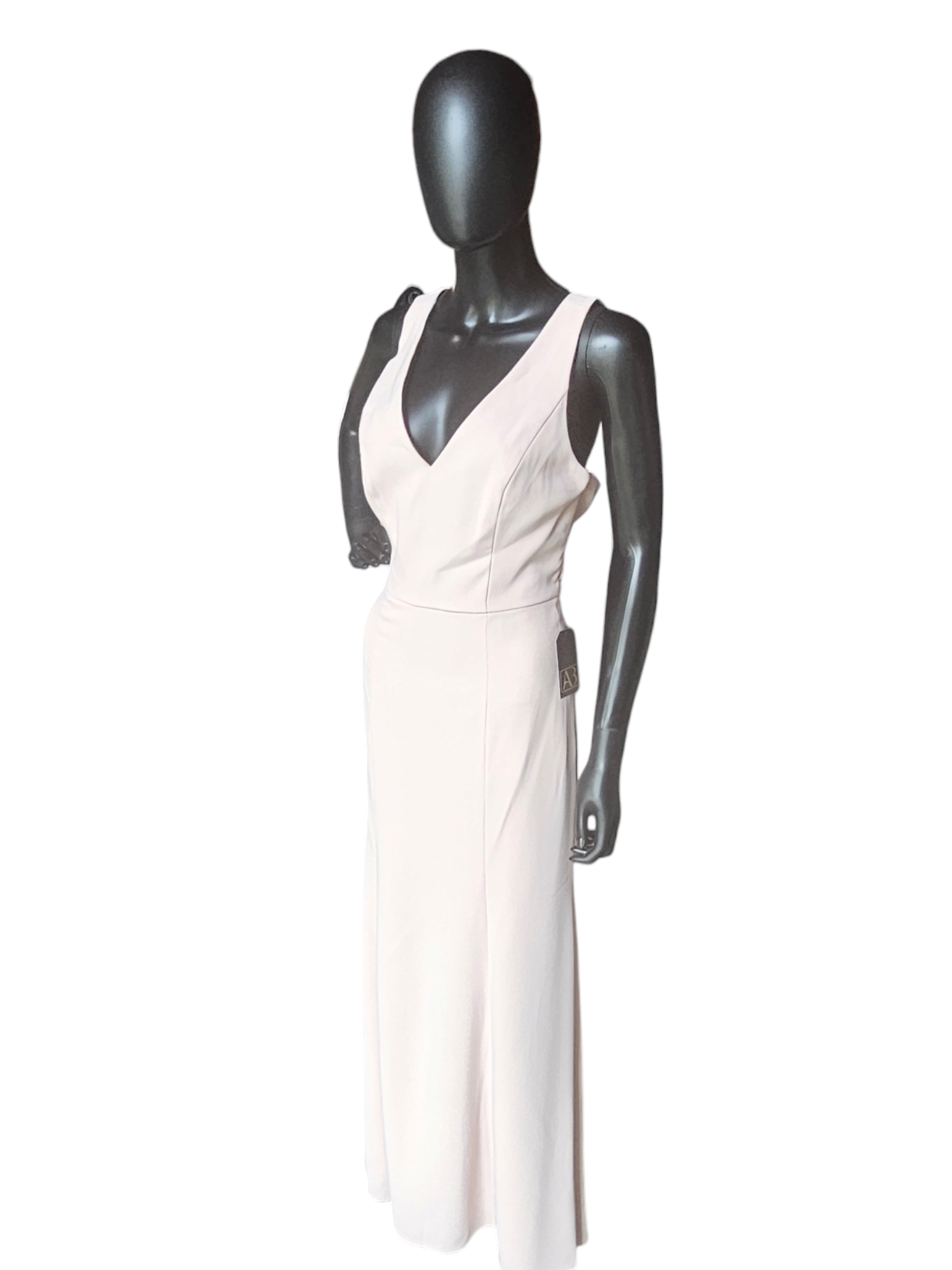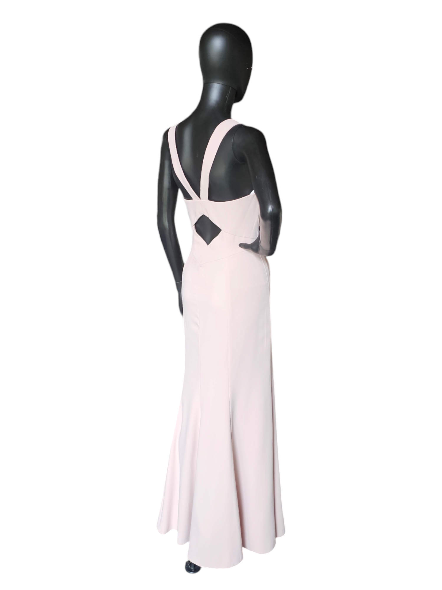 Experience elegance and sophistication in our Bella Bridesmaids Nude Crepe dress. This stunning piece features a crepe fabric for a sleek and luxurious look, a flattering fitted silhouette, a plunging v-neck for a touch of allure, a cut-out back for a unique and modern twist, and a convenient side zip for easy wear. Elevate your bridesmaid style with this must-have option.