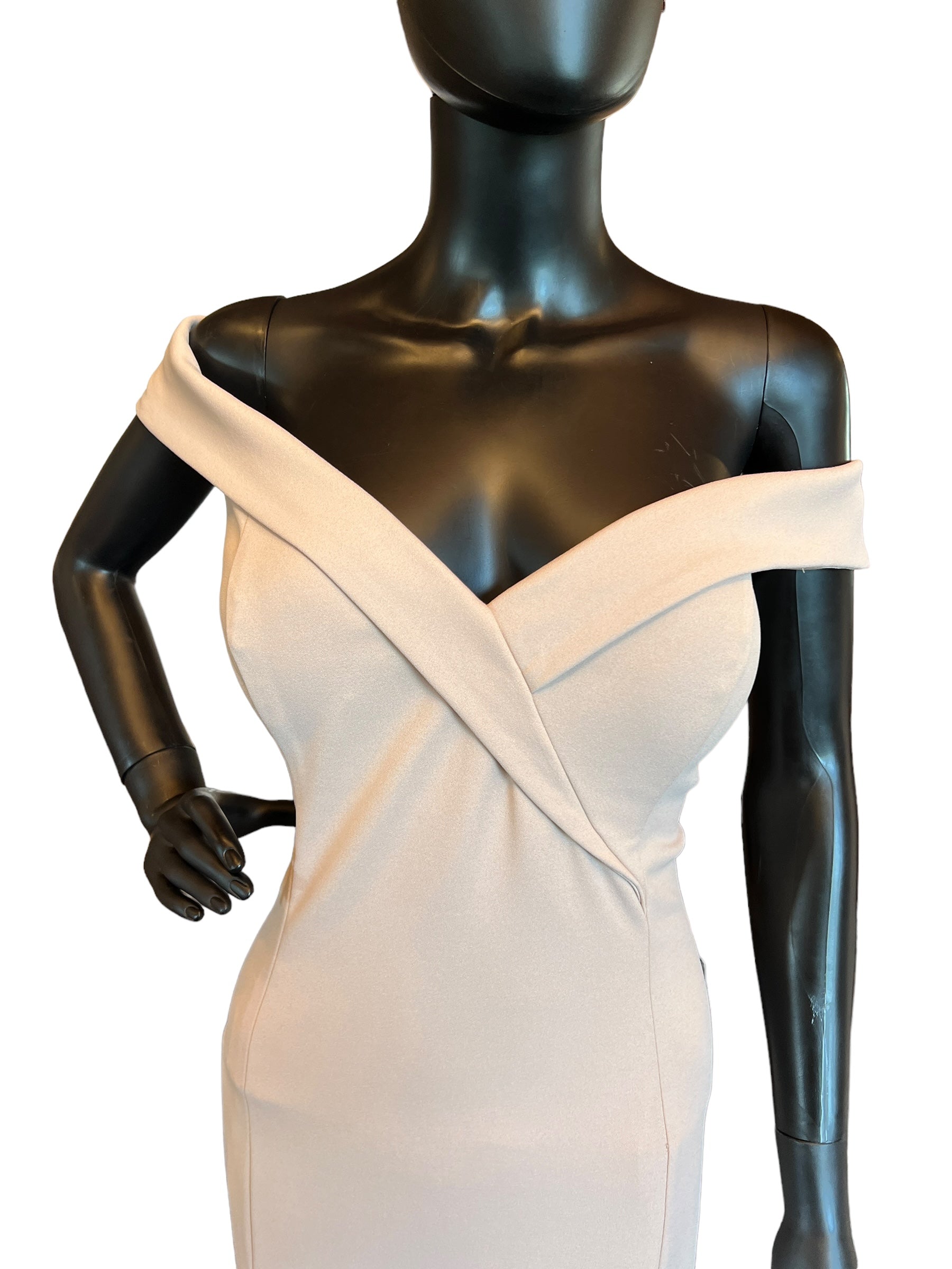 Special Attributes: Princess off-shoulder criss cross, side slit