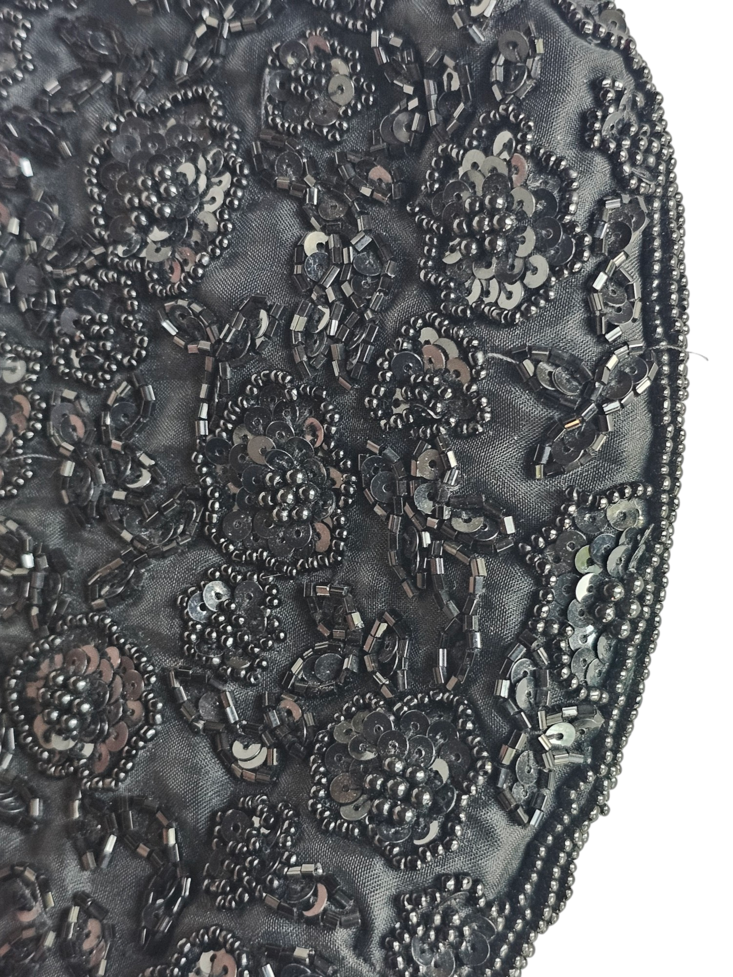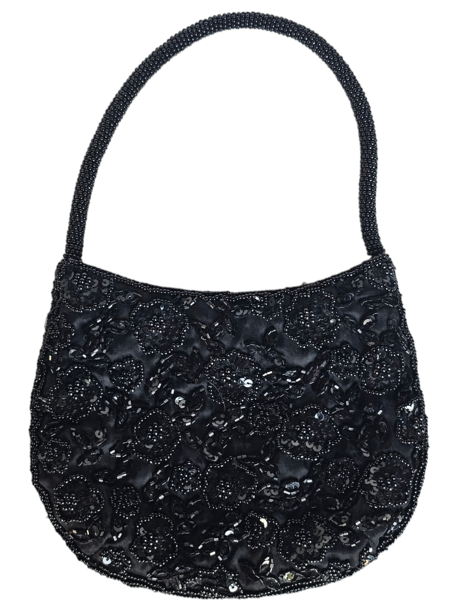 Indulge in opulent elegance with our Black Beaded Clutch. Crafted in a unique clam shape, this handbag features intricate black bead and sequin detailing in a stunning floral pattern. The beaded handle adds a touch of luxury, while the magnet closure ensures your essentials stay secure. Perfect for adding a touch of sophistication to any outfit.