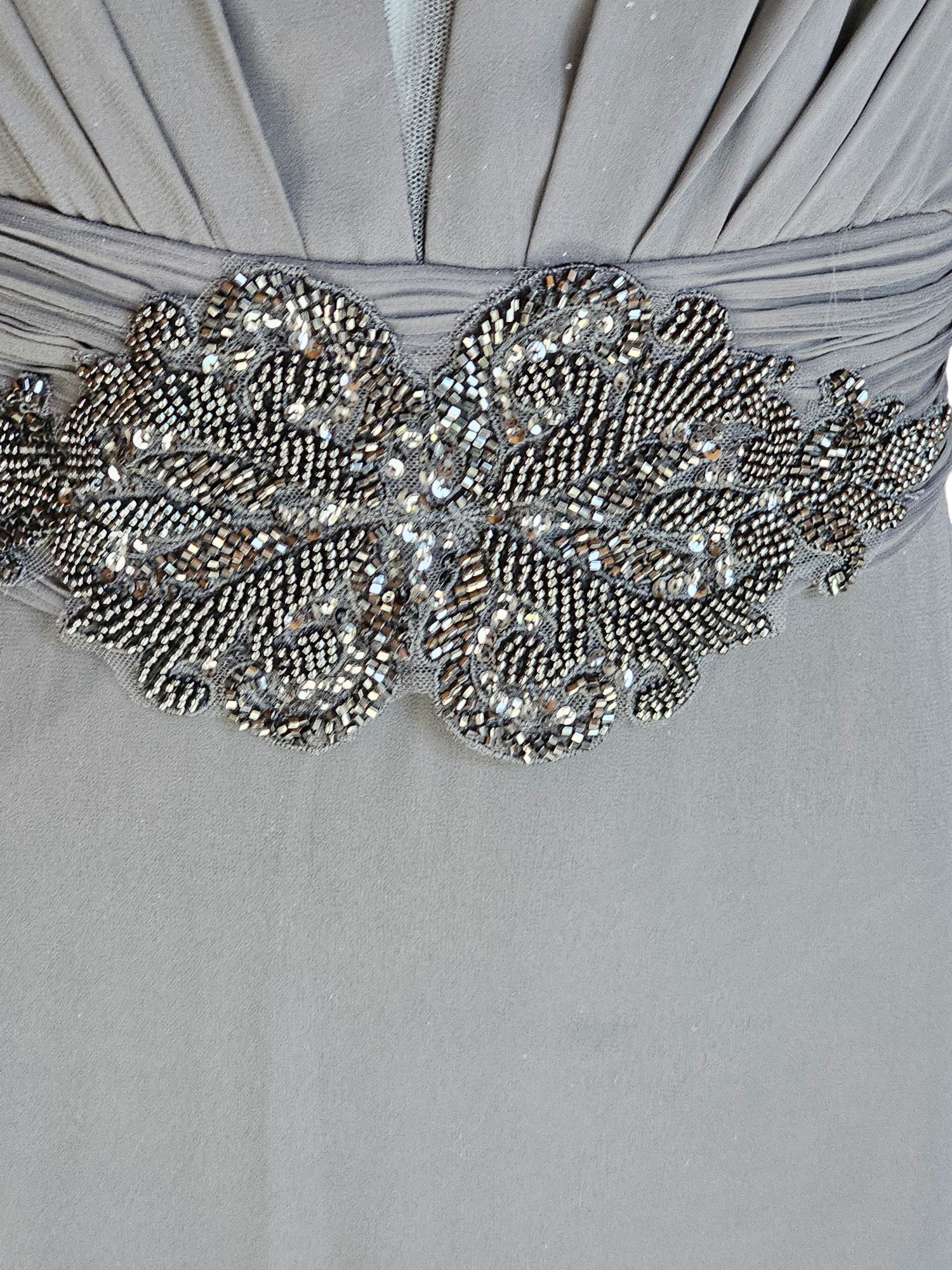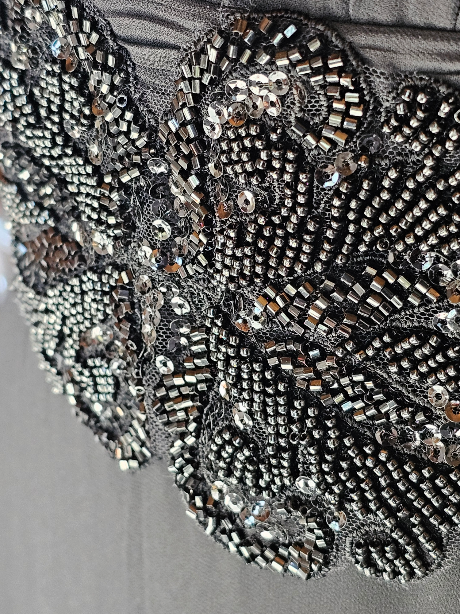 Black Chiffon Flutter Sleeve Full Length Formal Gown