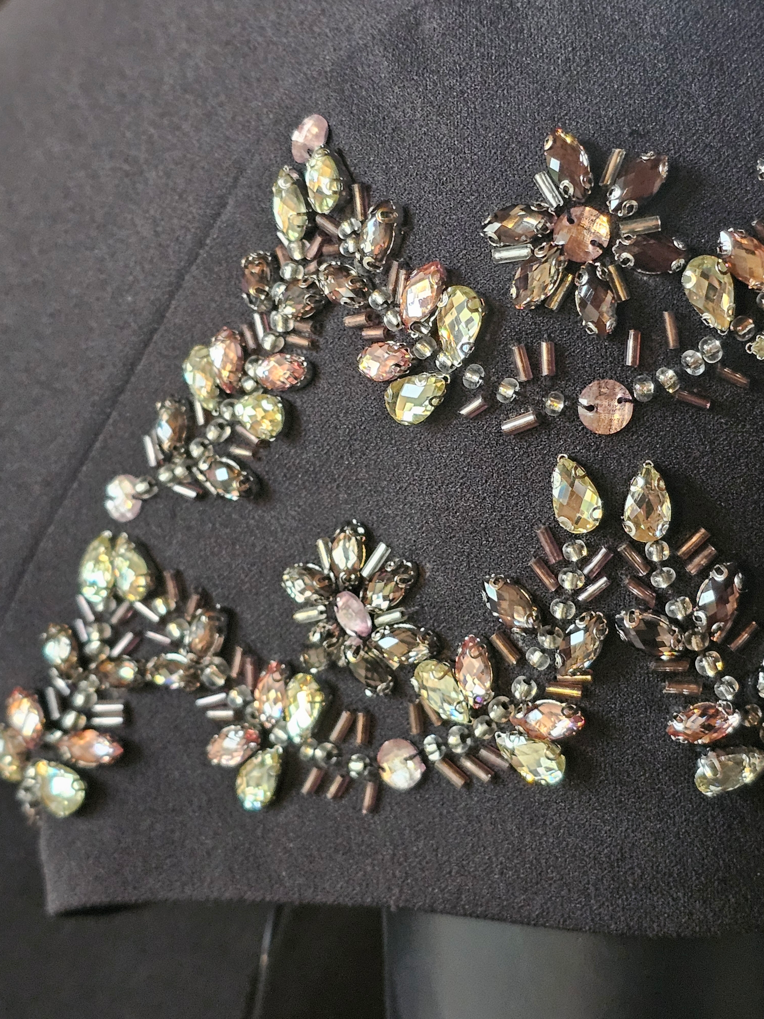 Classic chic - simplicity with a touch of jewels. The large cyrtaal applique are colored with light pink, light green and Iridescent grey. Gorgeous lines!