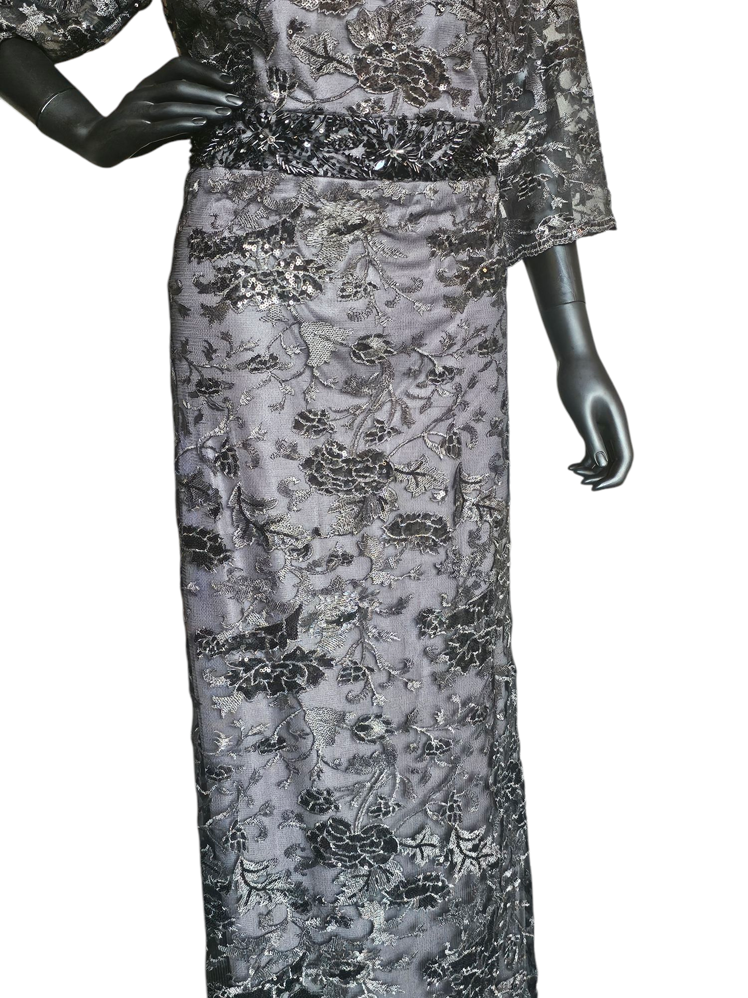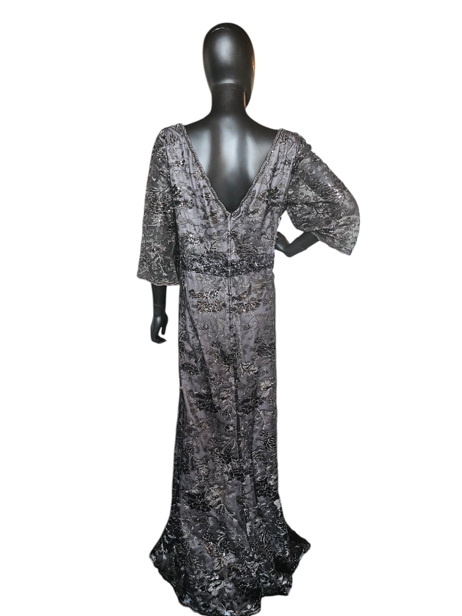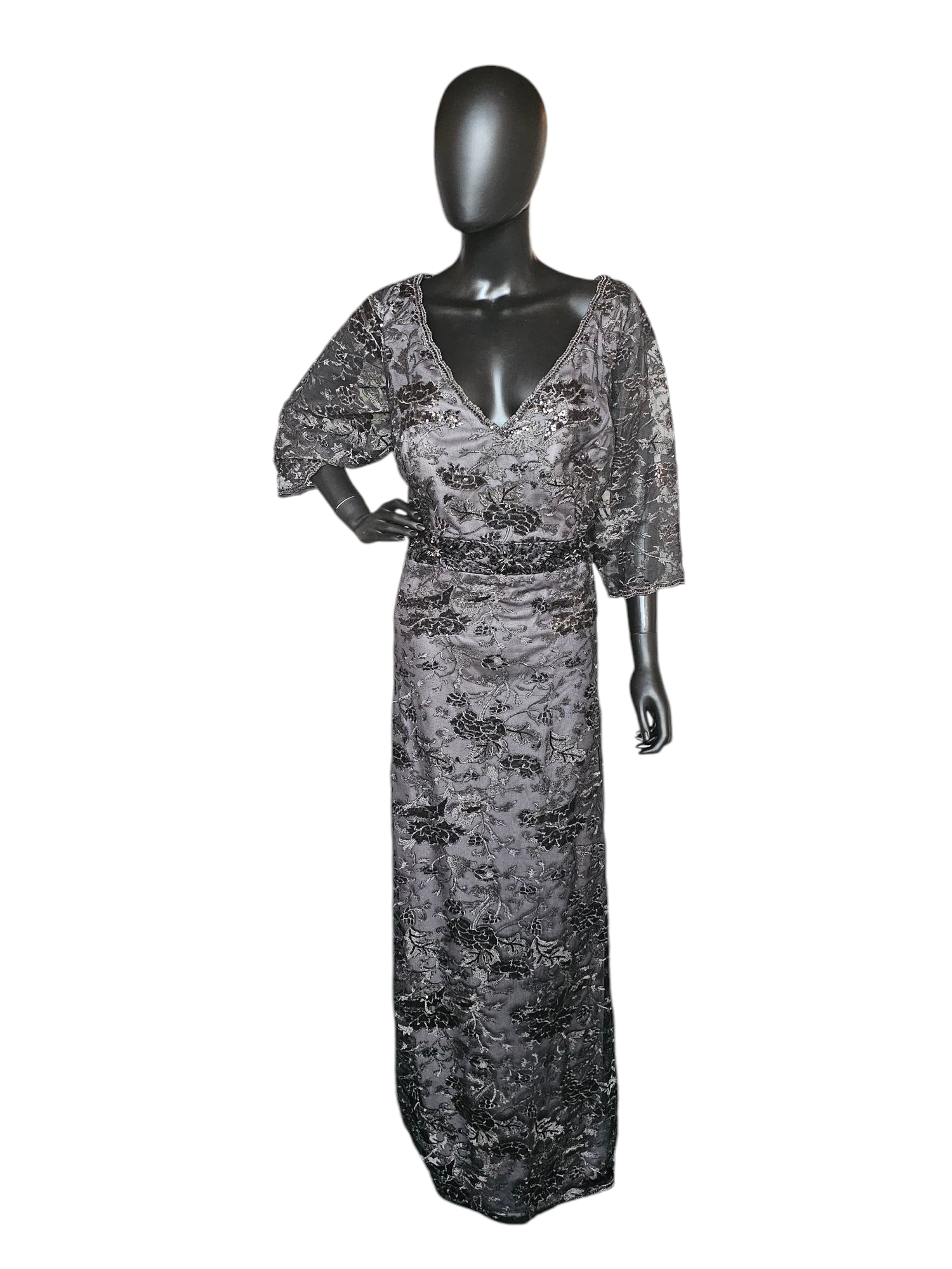 Black Floral Overlay Wide Sleeve Formal Dress - Montage
