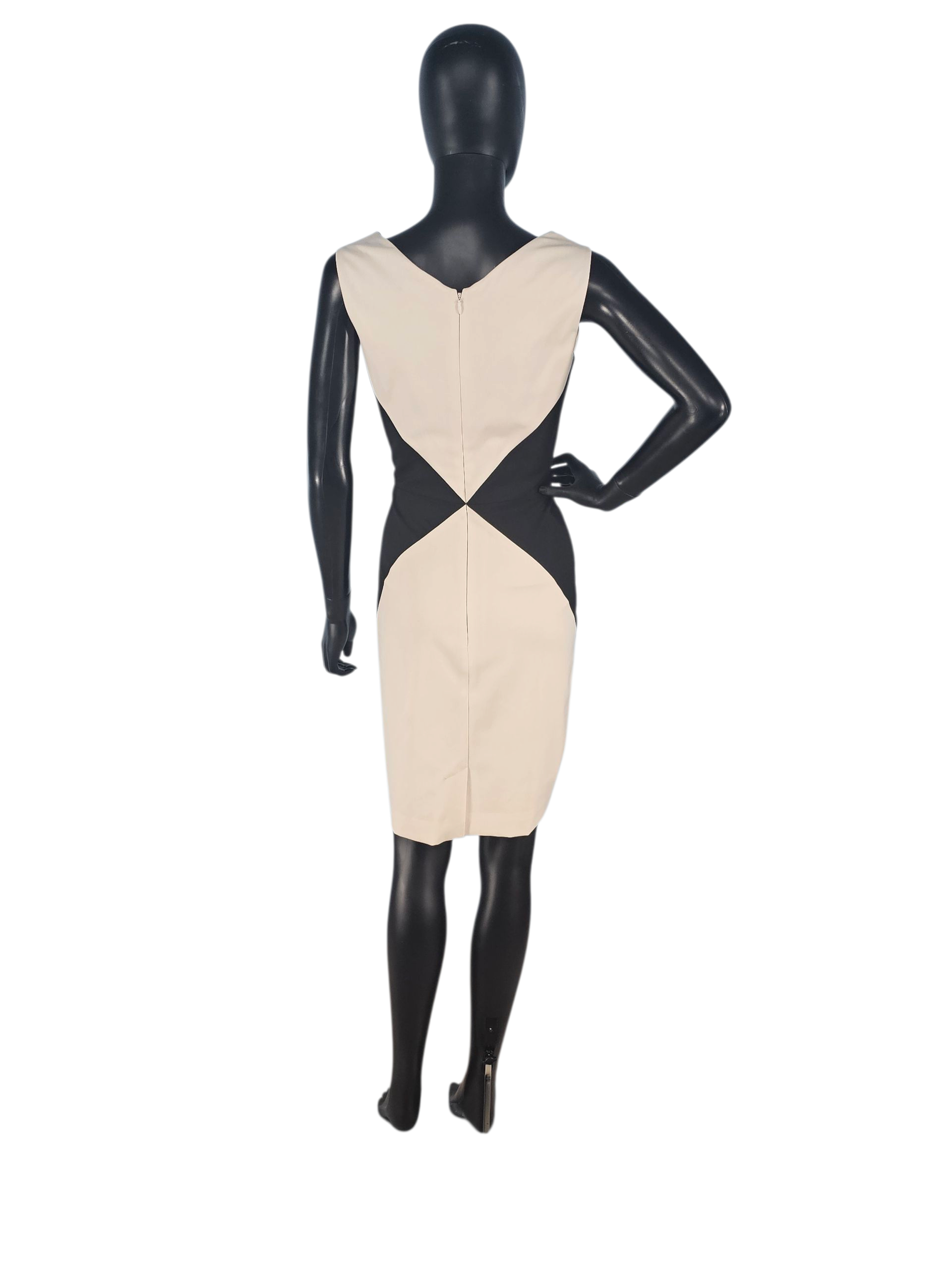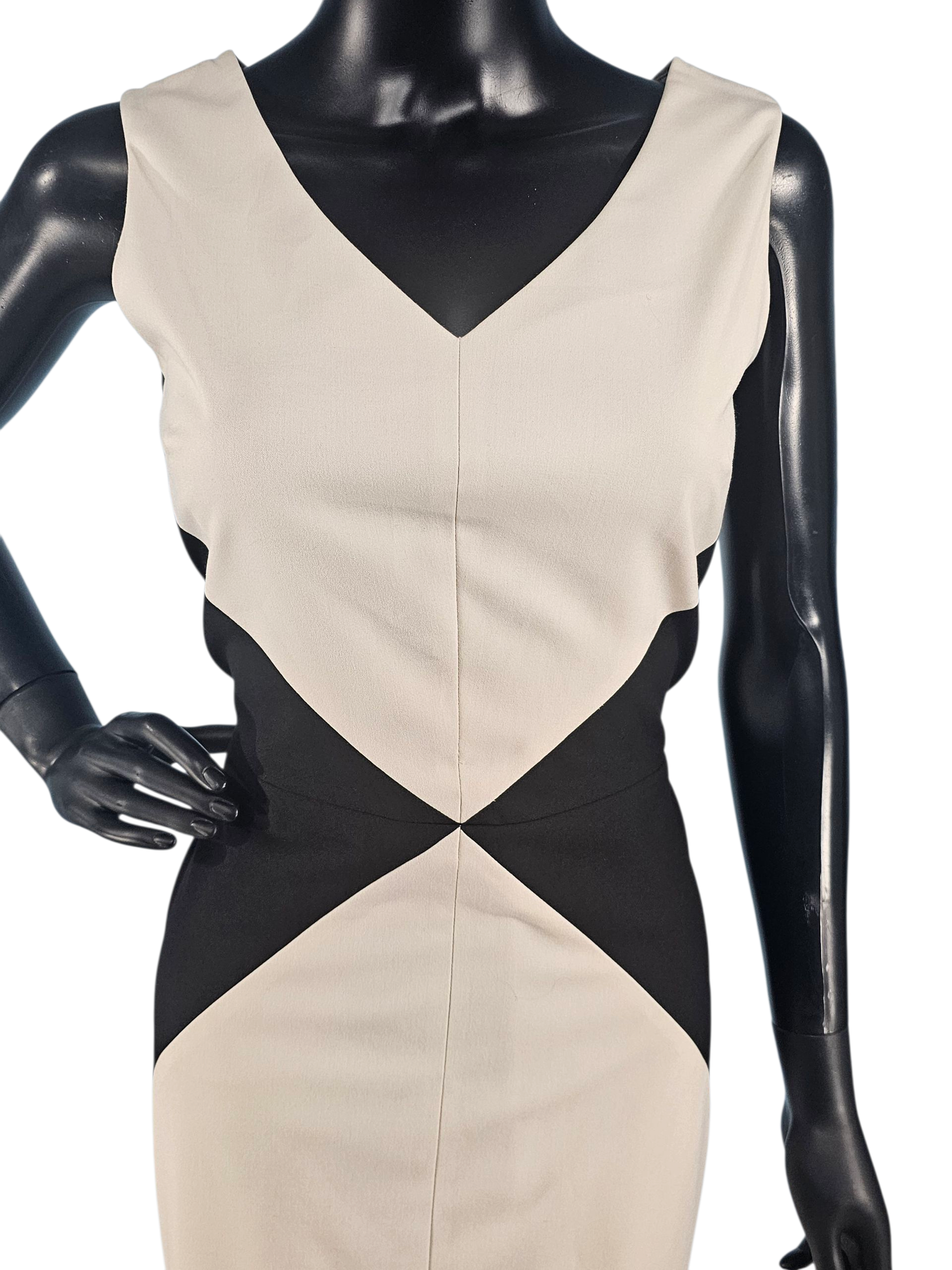 This Black/Ivory Diamond Sheath dress boasts a stunning inverted Black/White Diamond design along the waistline, creating a flattering shape. With a sophisticated v-neckline and sleeveless sheath style, this dress is the perfect combination of elegance and modern design. Elevate your wardrobe with this one-of-a-kind dress.