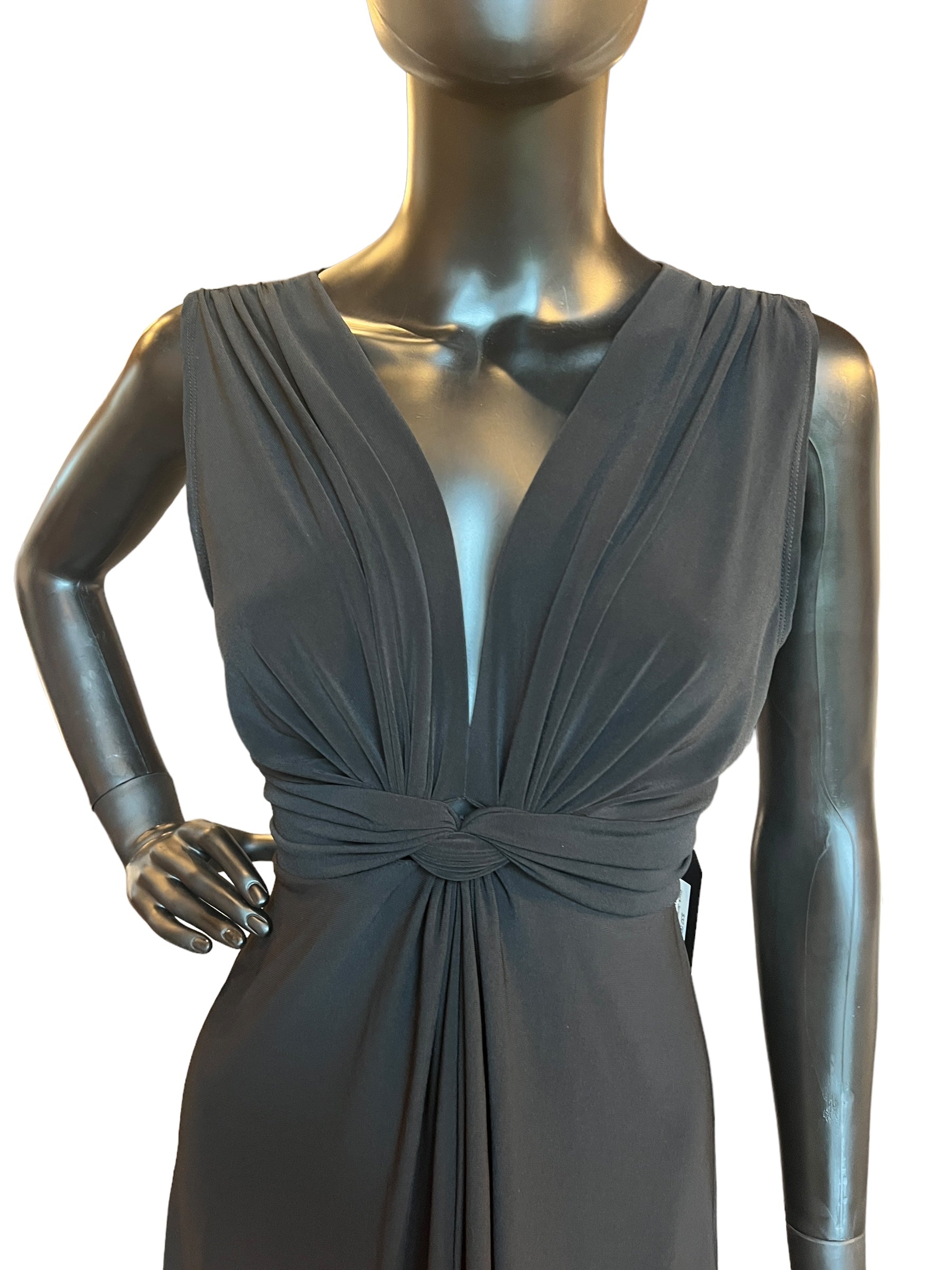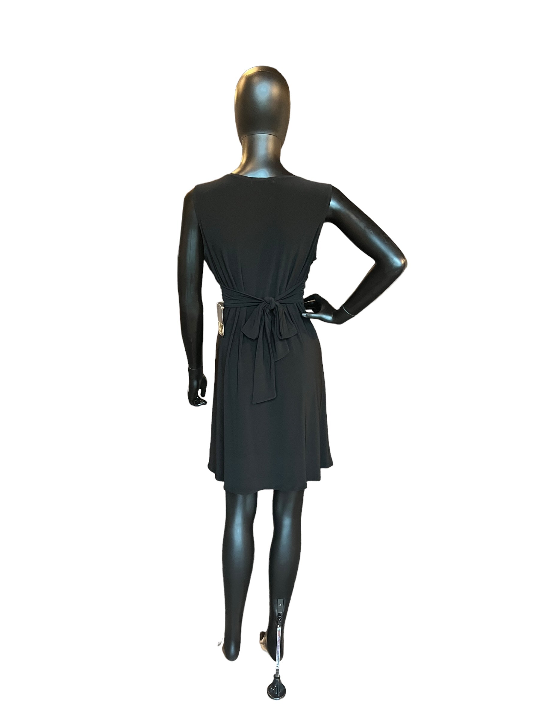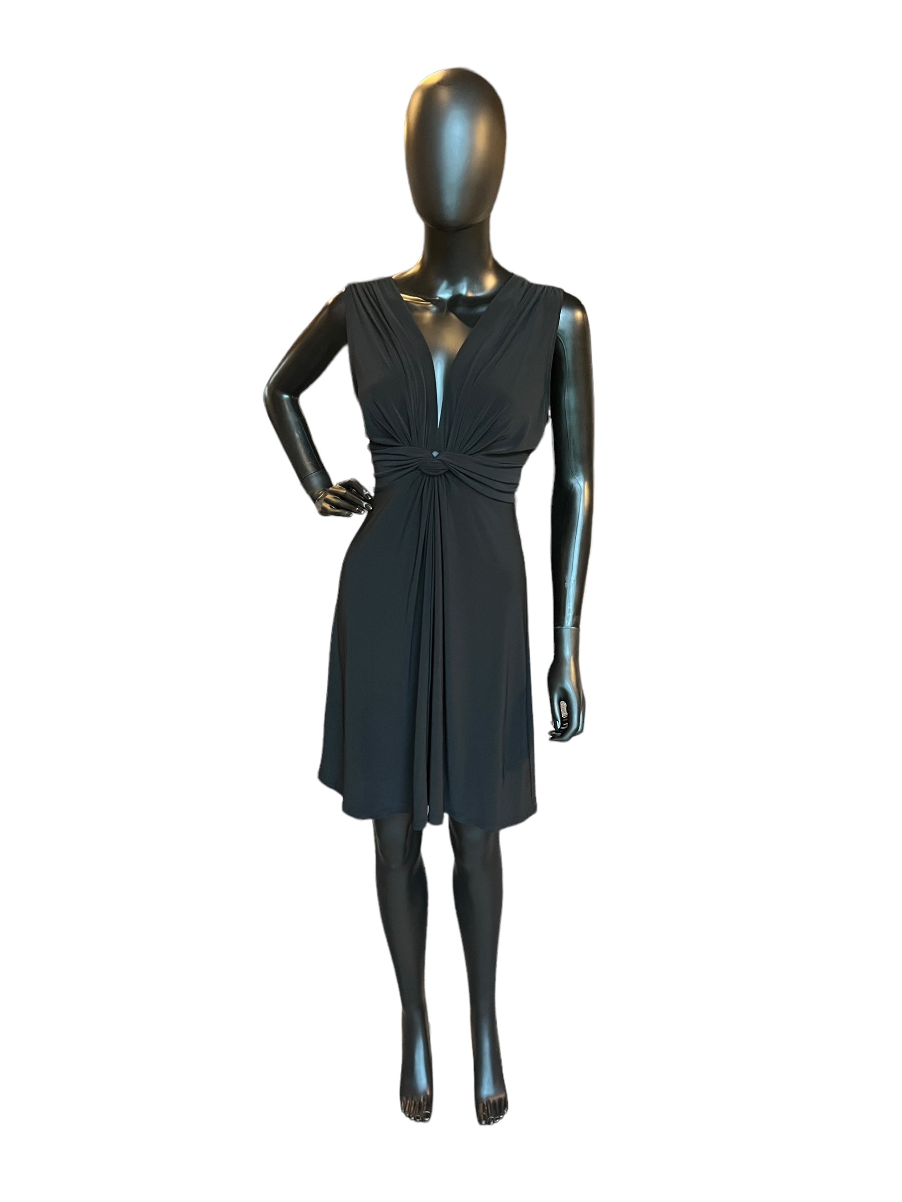 Black Jersey Front Tie Mid-Length Dress