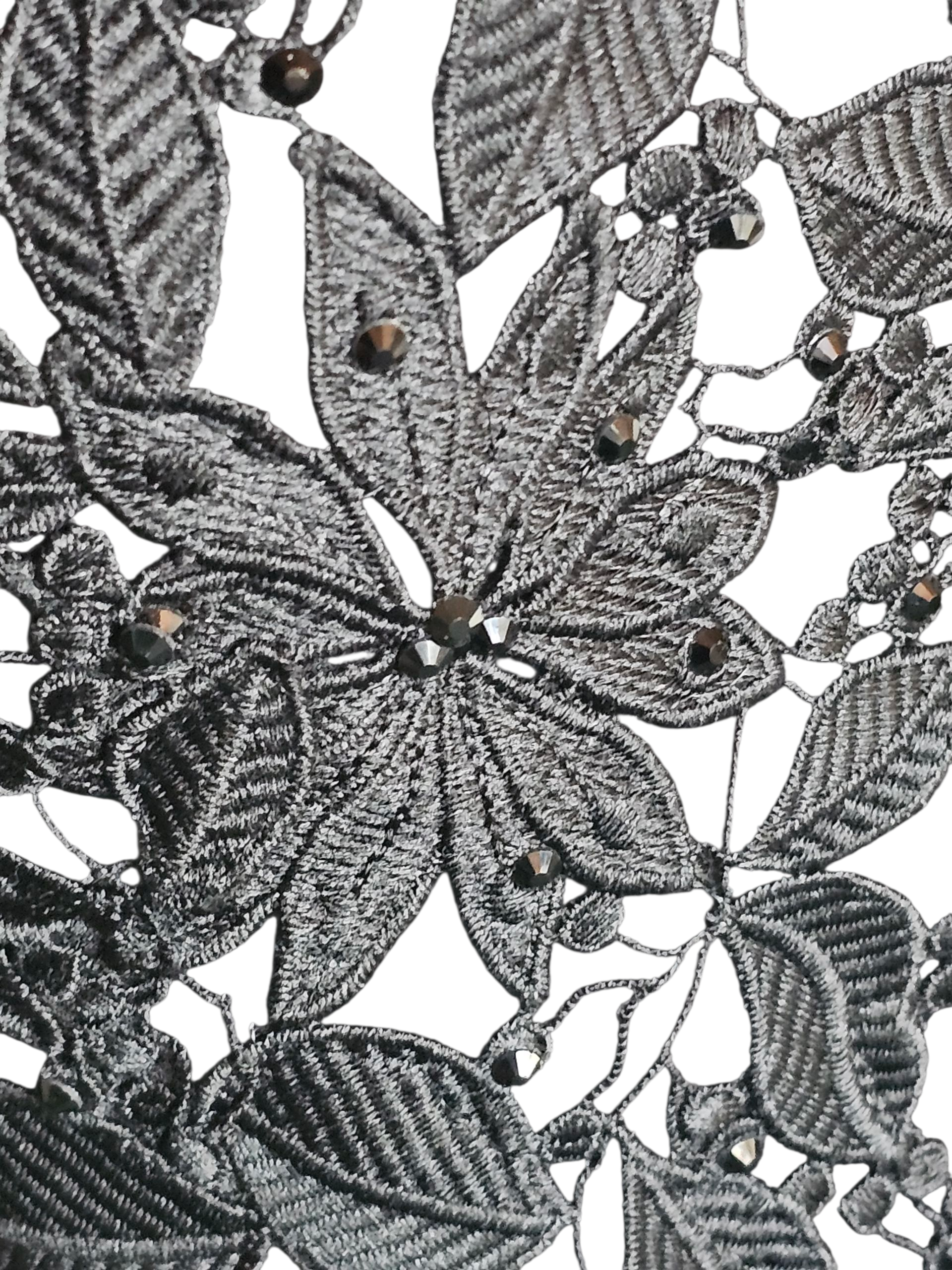 Black Open Weave Lace Long Sleeve V-Neck Formal Dress - Madeline Gardner