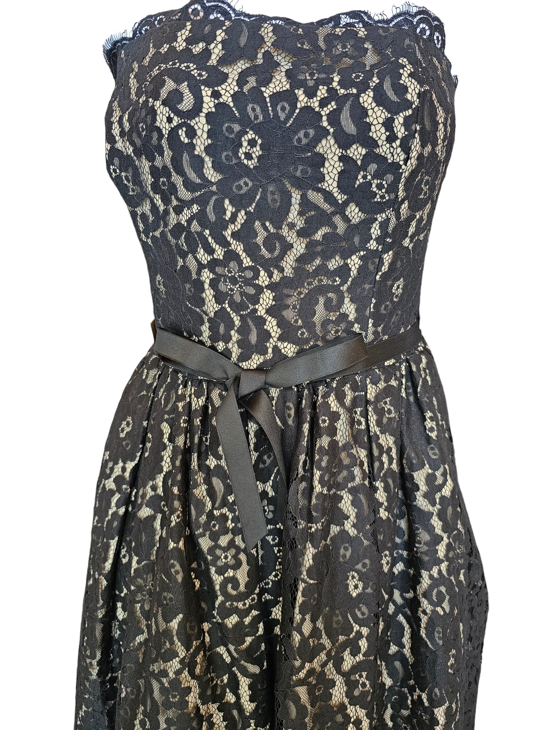 Black/Nude Lace Strapless Party Dress