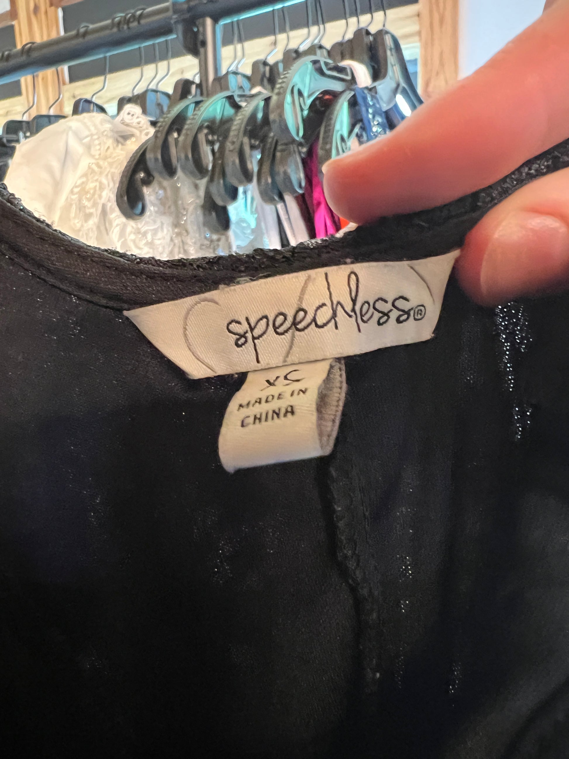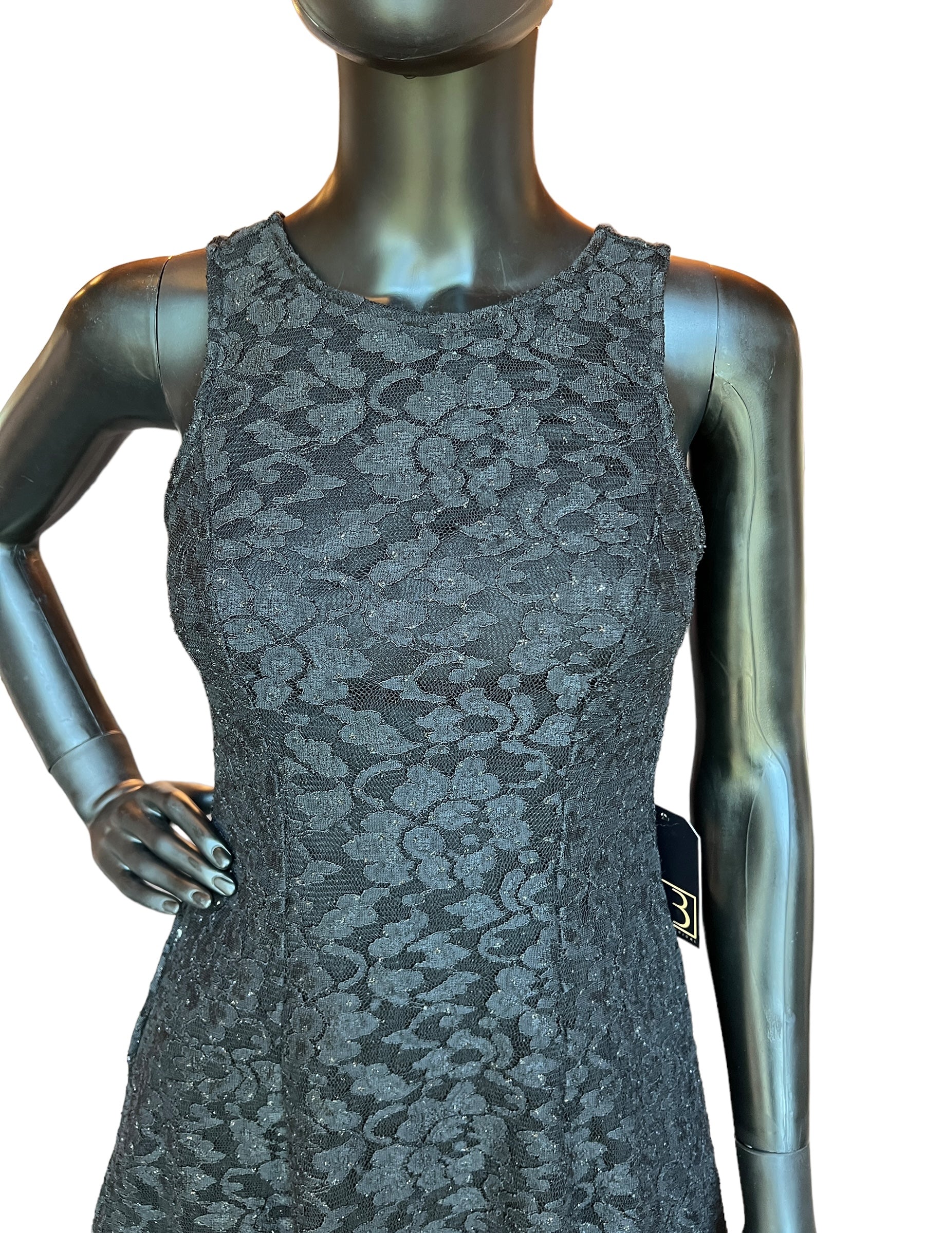 This Black Lace Tie Back features an adorable, crew neck design with a tie-back detail, all made from elegant black lace. The ultra short swing skirt adds a touch of playfulness to this sophisticated piece. Perfect for adding a touch of charm and elegance to any outfit.