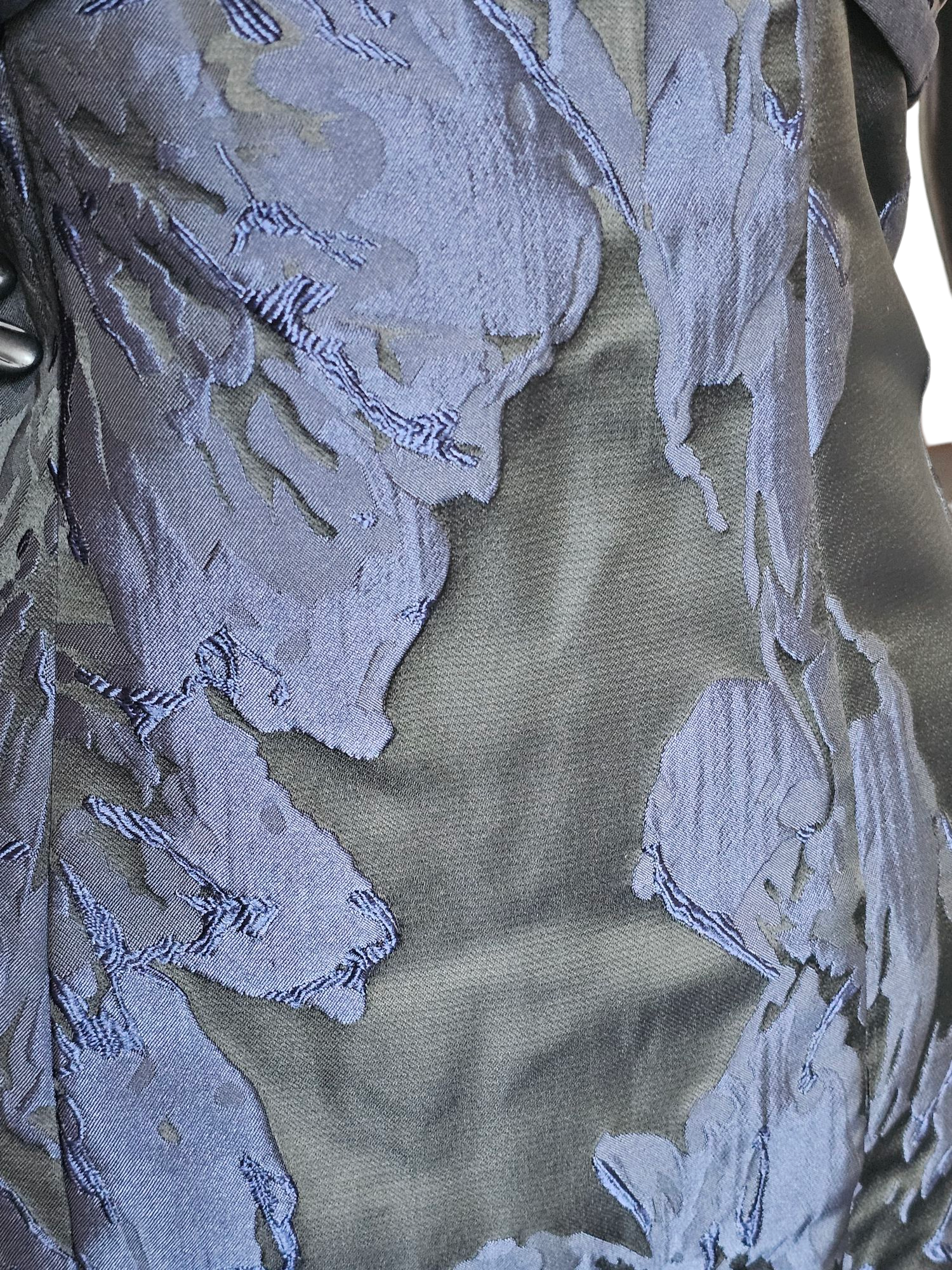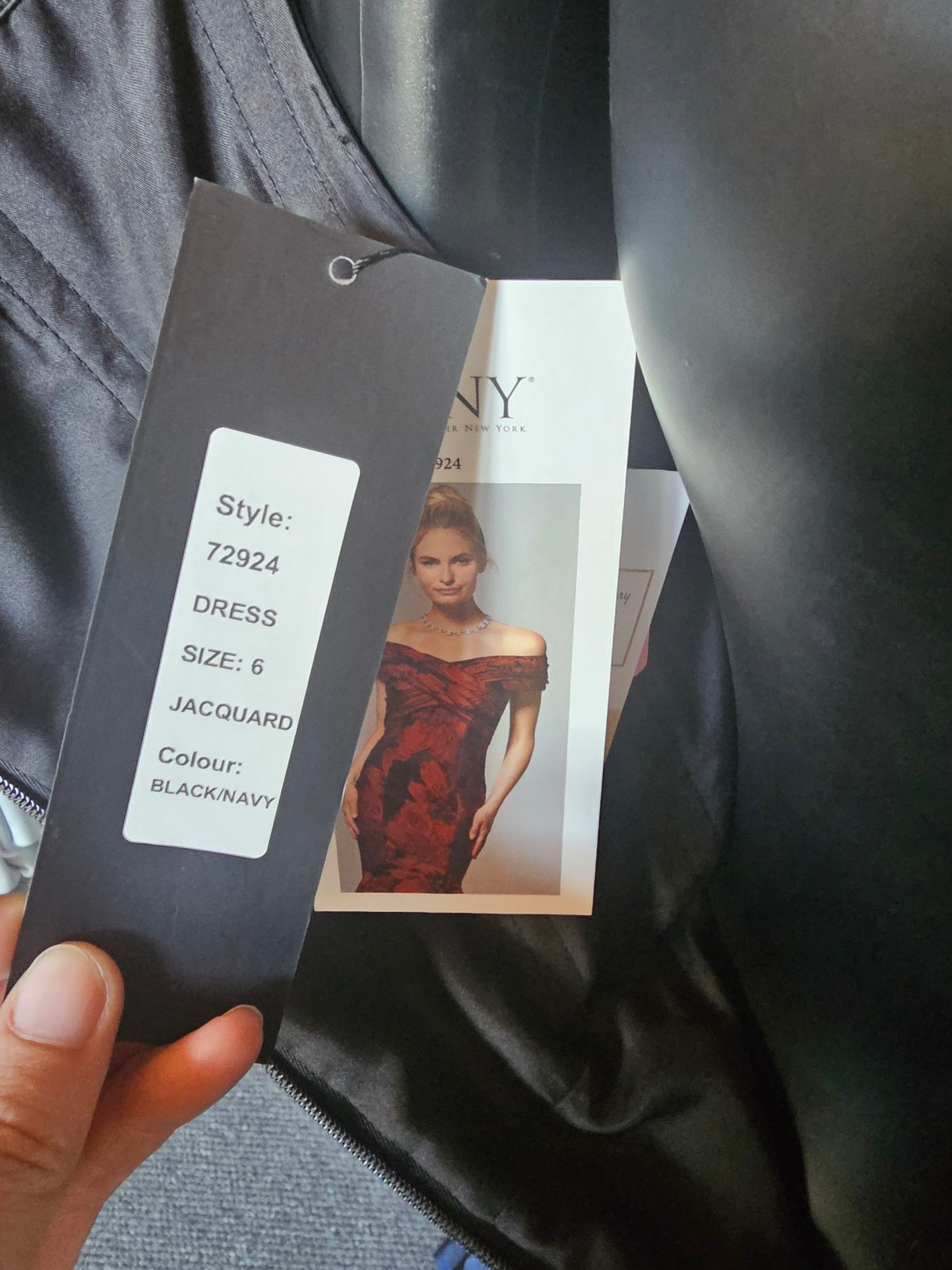 Black/Navy Jacquard Off Shoulder Fit/Flare Formal Gown - Madeline Gardner