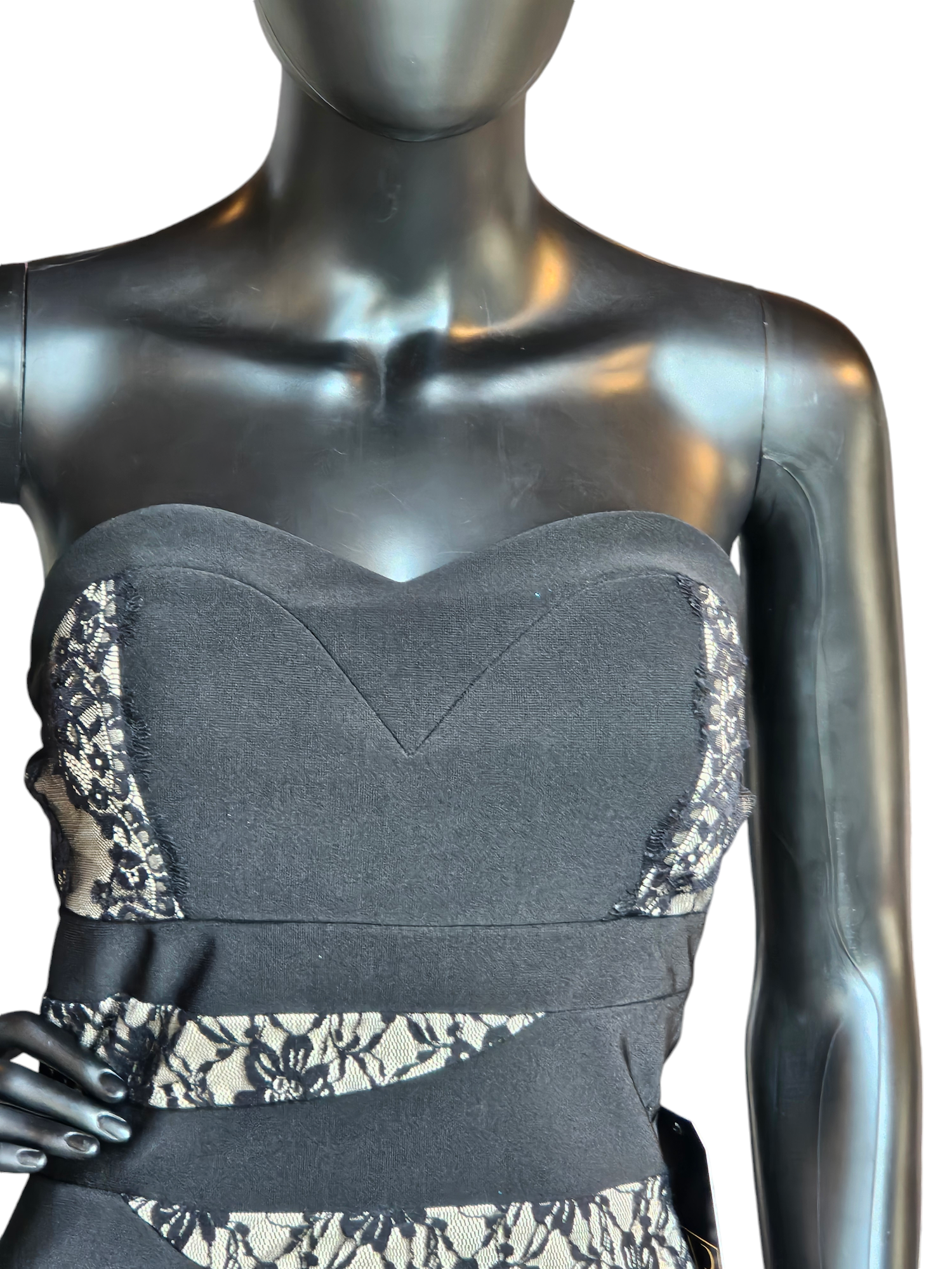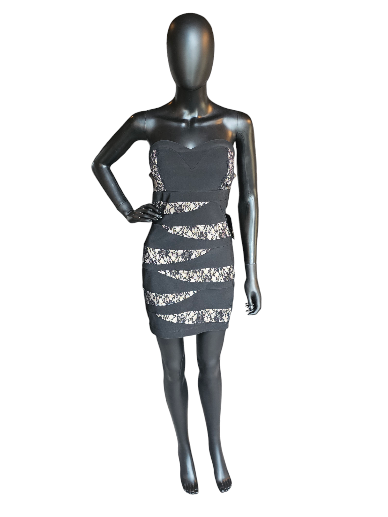 BlackLace/Nude Zig-Zag Bodycon Dress - Emerald Sundae