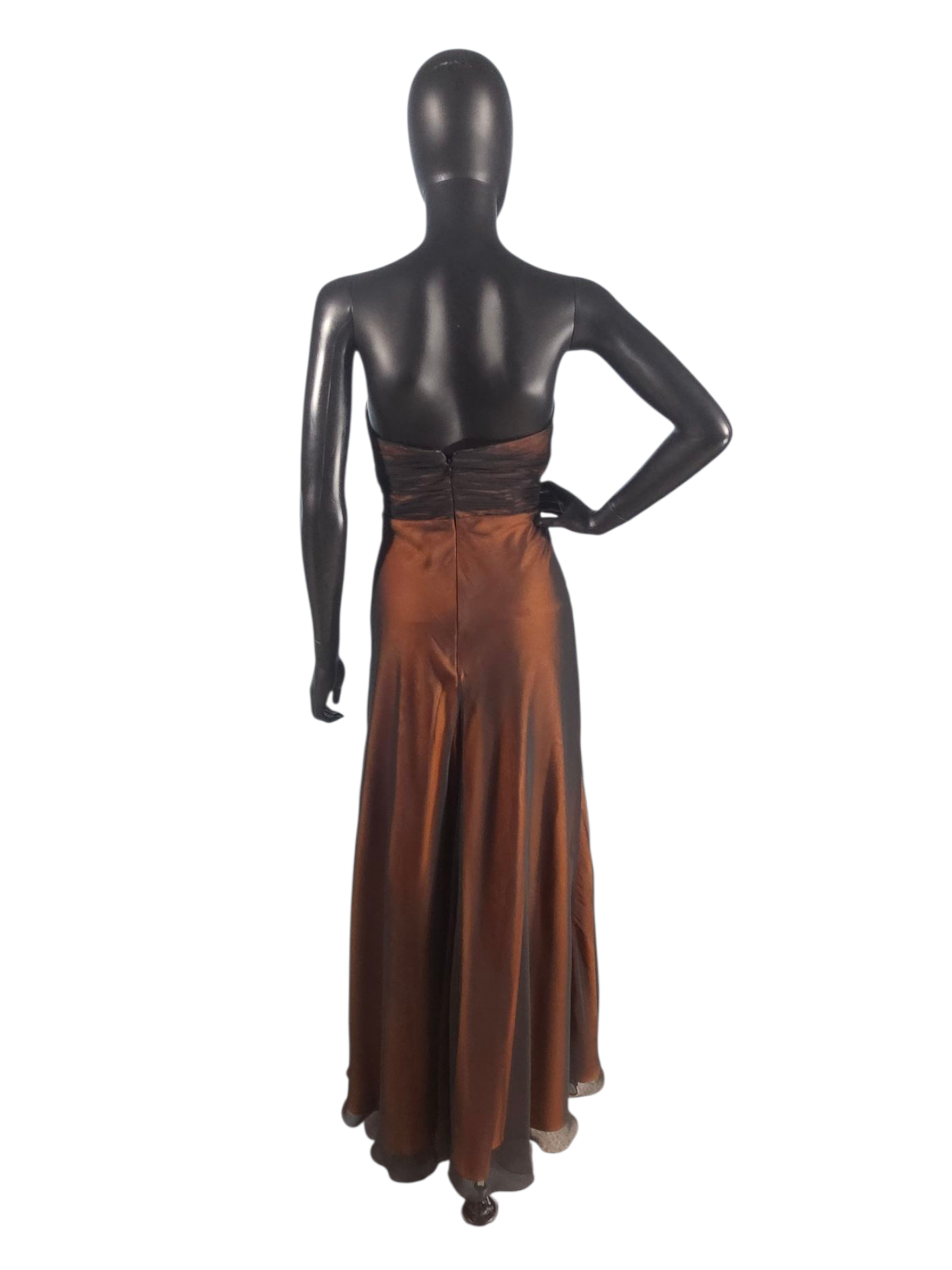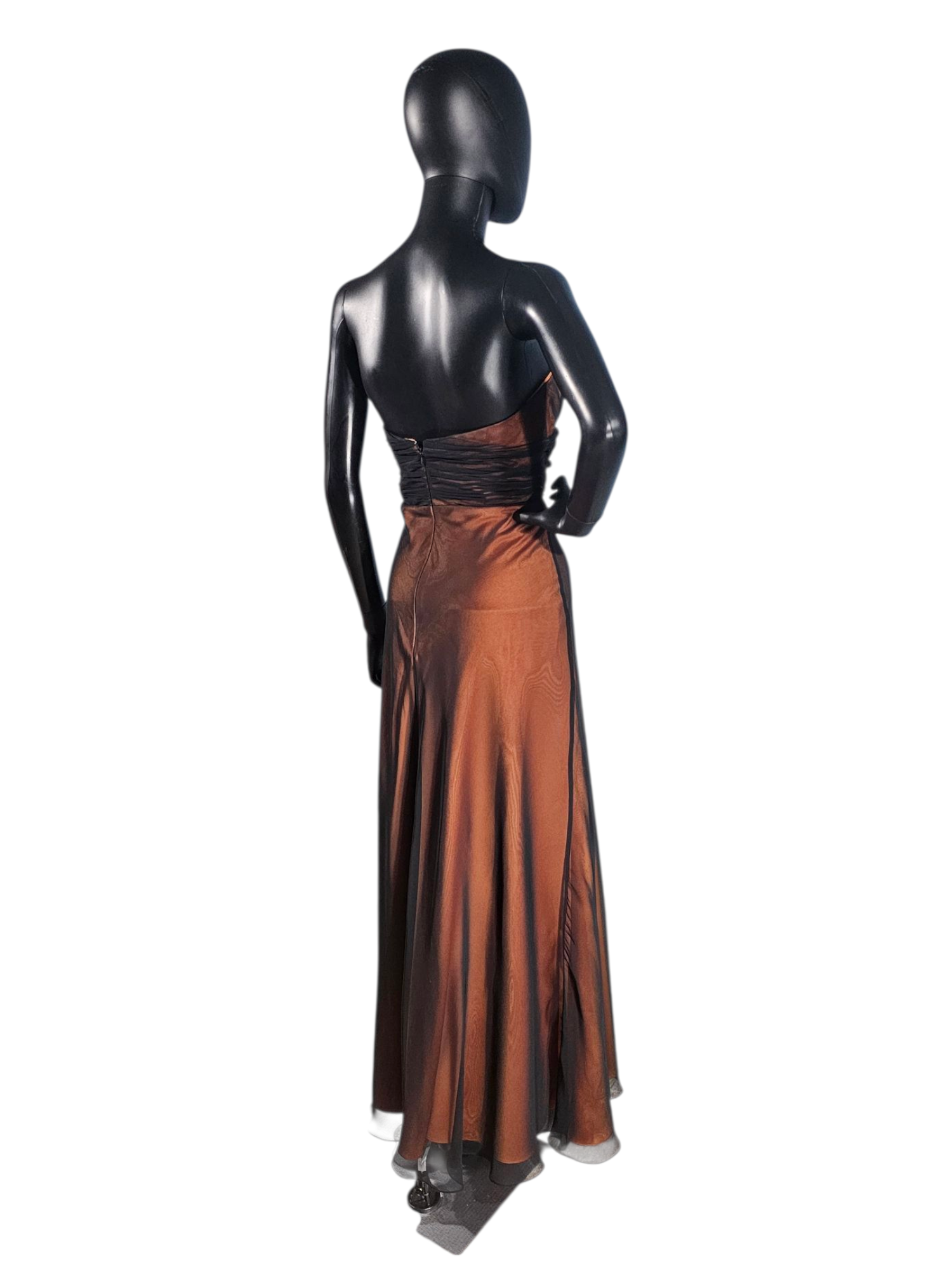 Black Overlay/Cognac Sweetheart Strapless Maxi Formal Dress - Da Vinci