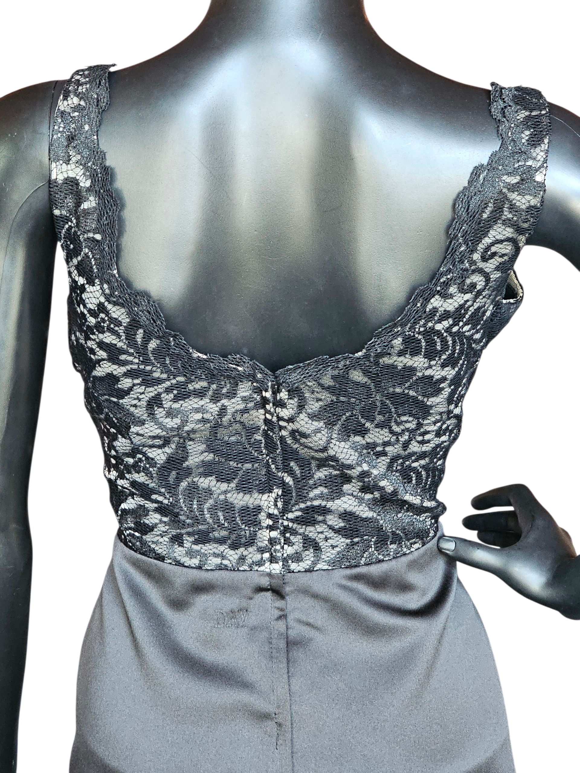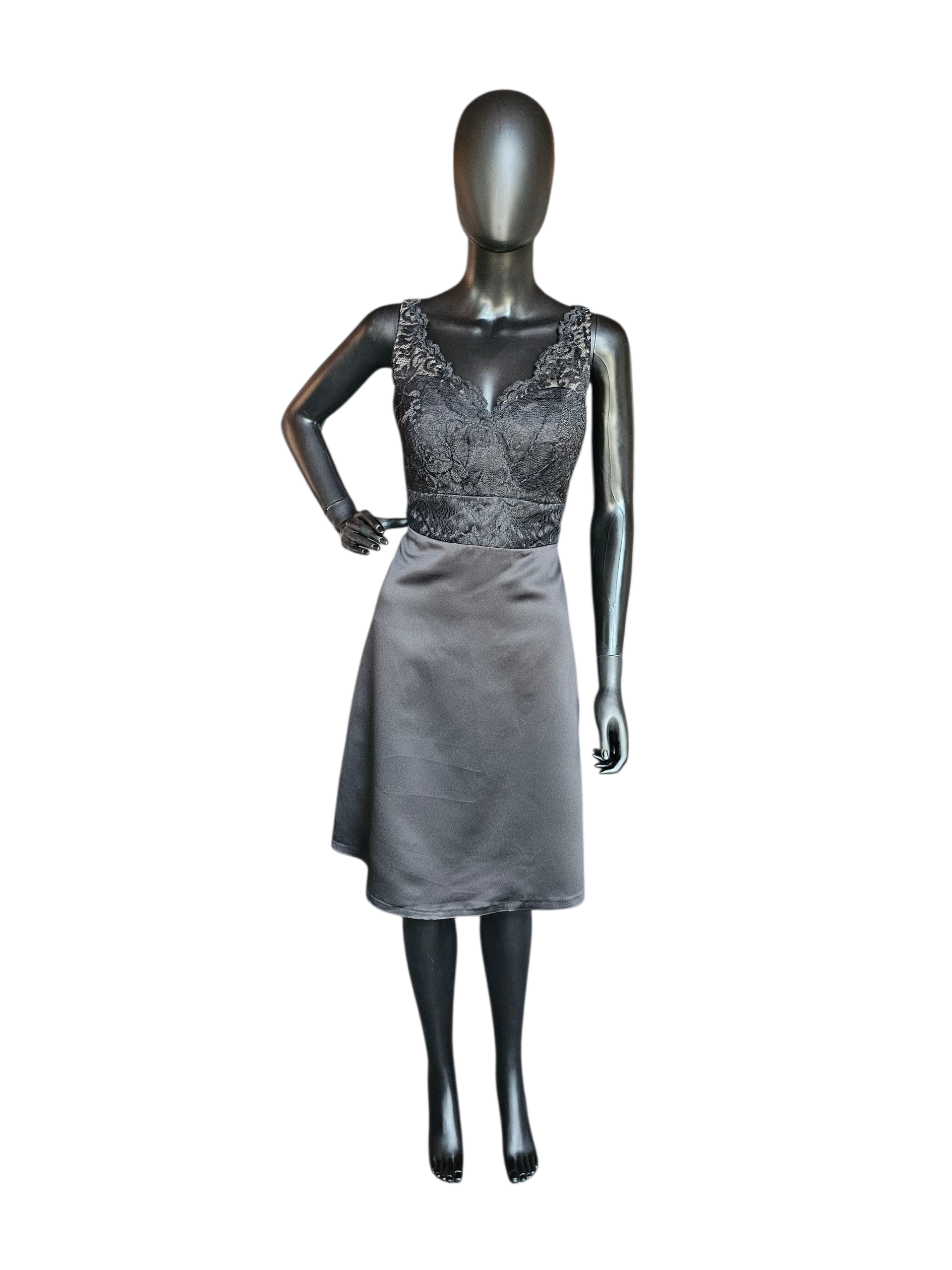 Black Satin/Lace Illusion A-Line Cocktail Dress - Da Vinci