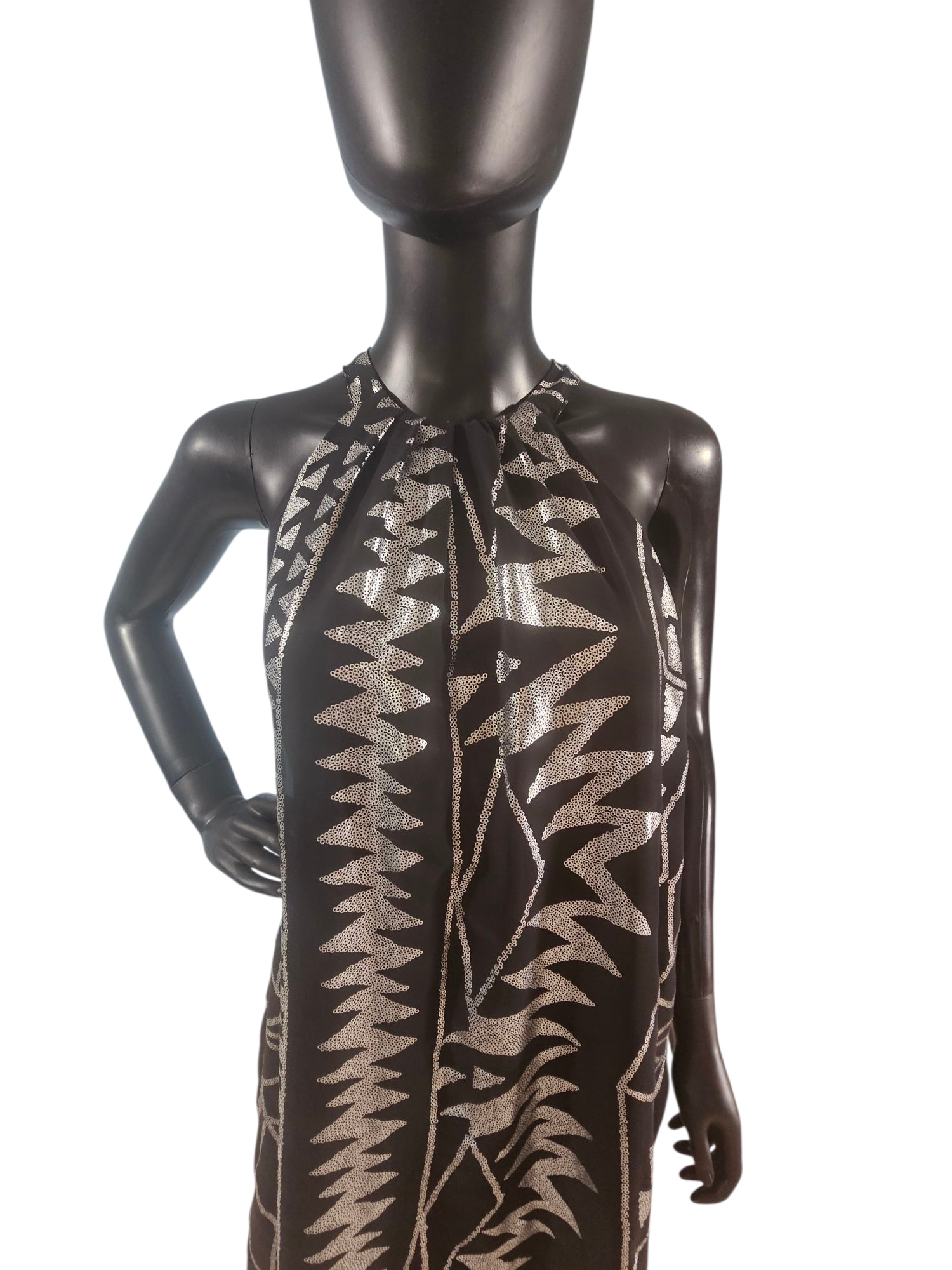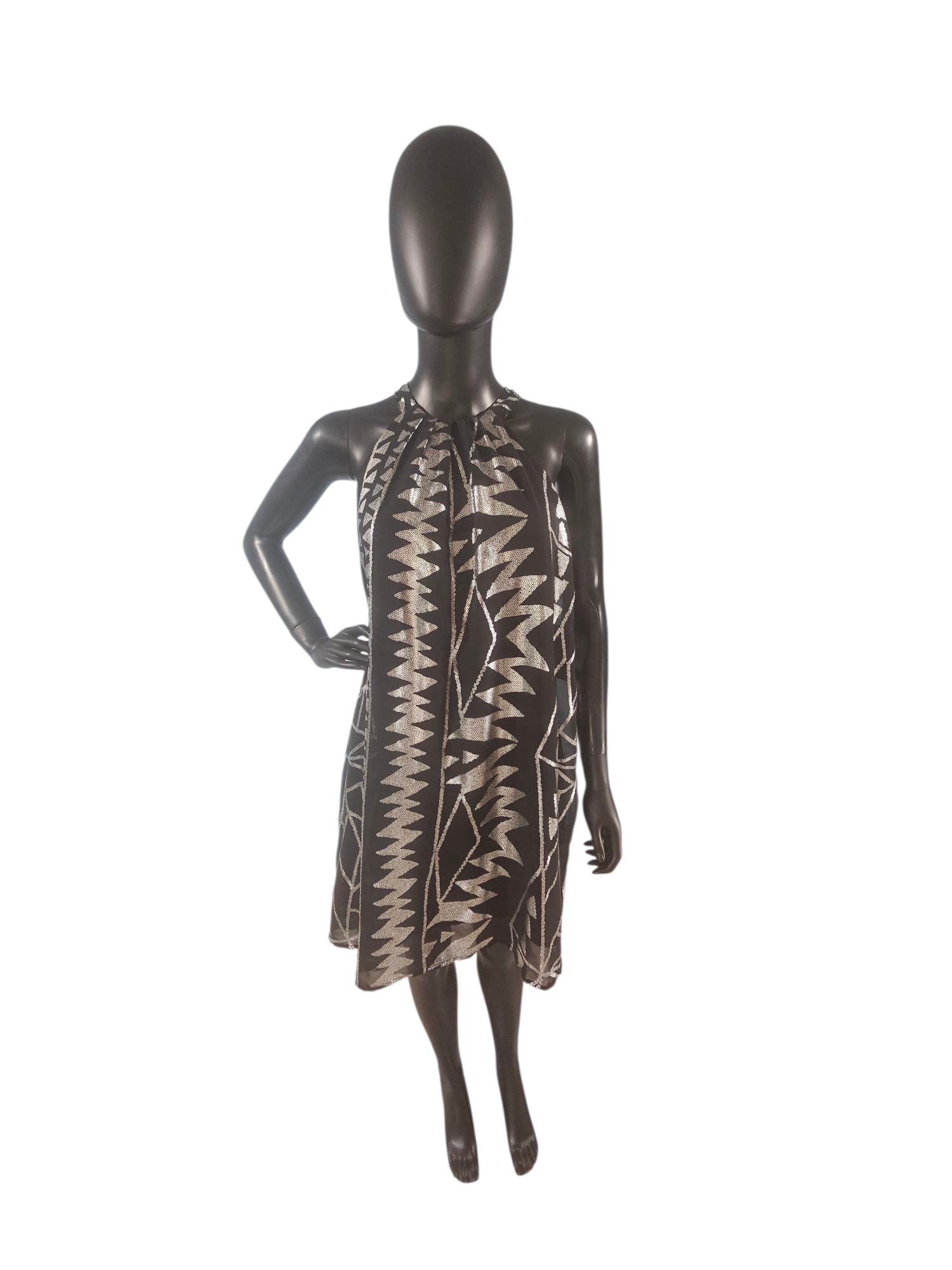 Black/Silver Abstract Halter Dress
