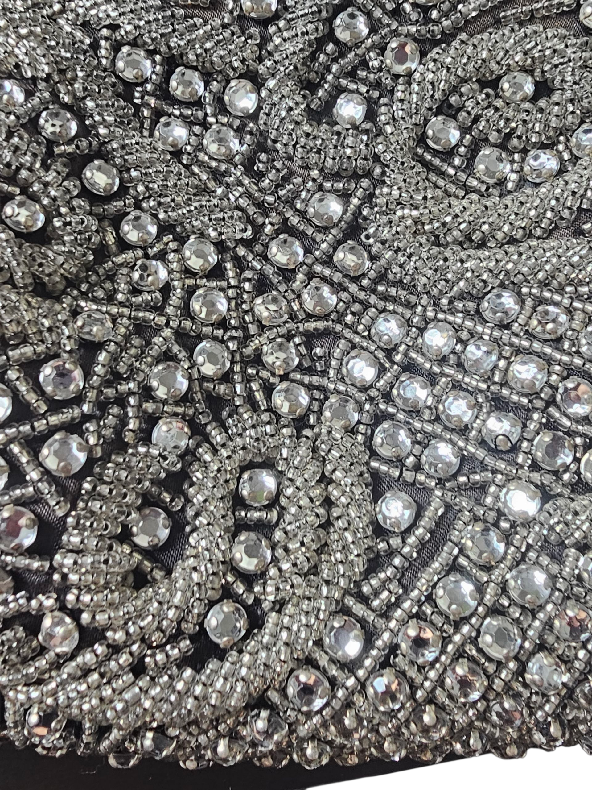Black/Silver Crystal Beaded Handbag