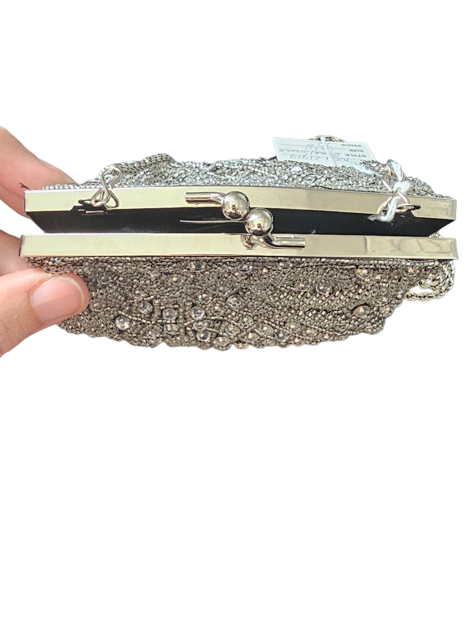 Black/Silver Crystal Beaded Clasp Handbag
