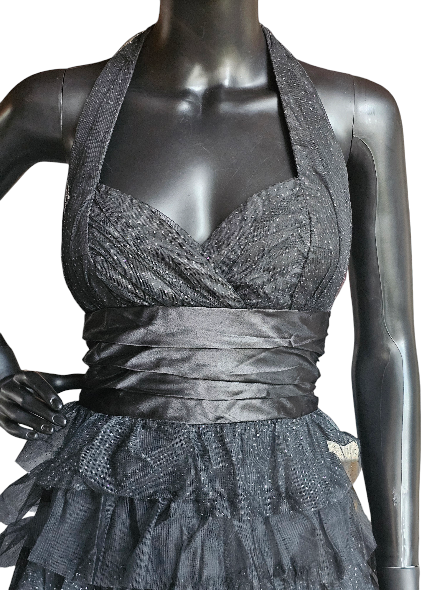 Black Sparkle Halter Tiered Flounce - Masquarade