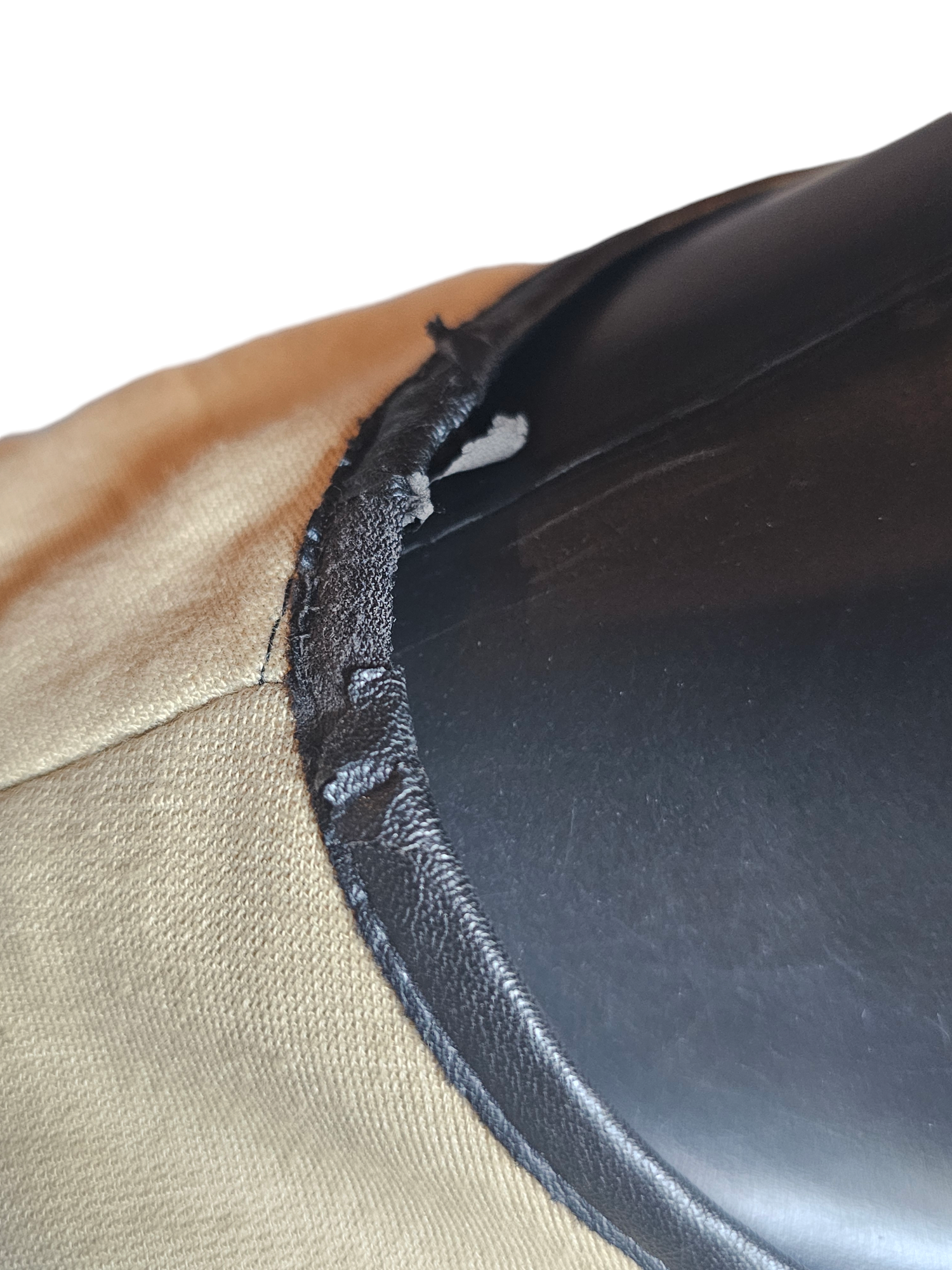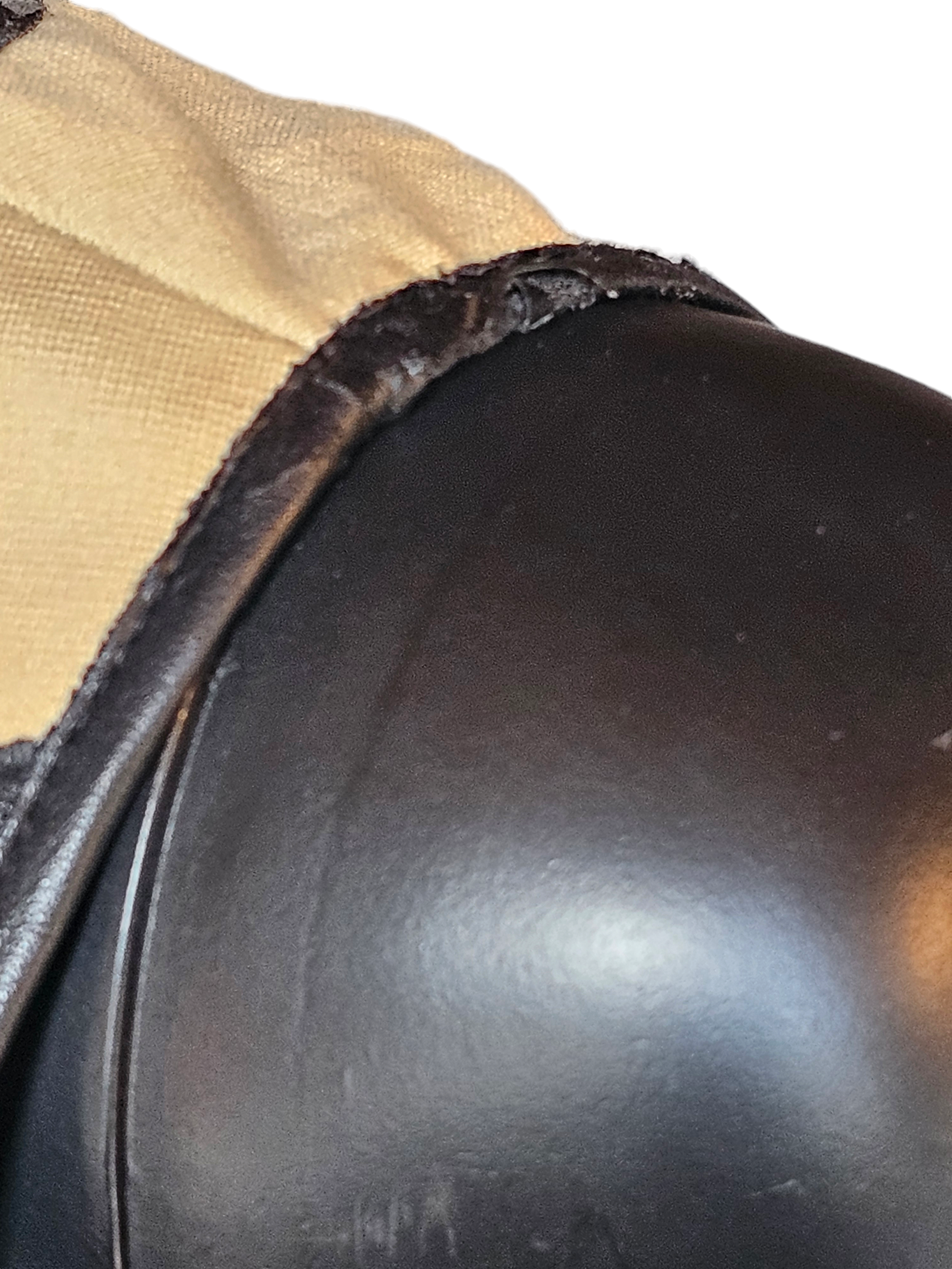 Some damage to the leather along the neckline. Price adjusted accordingly!