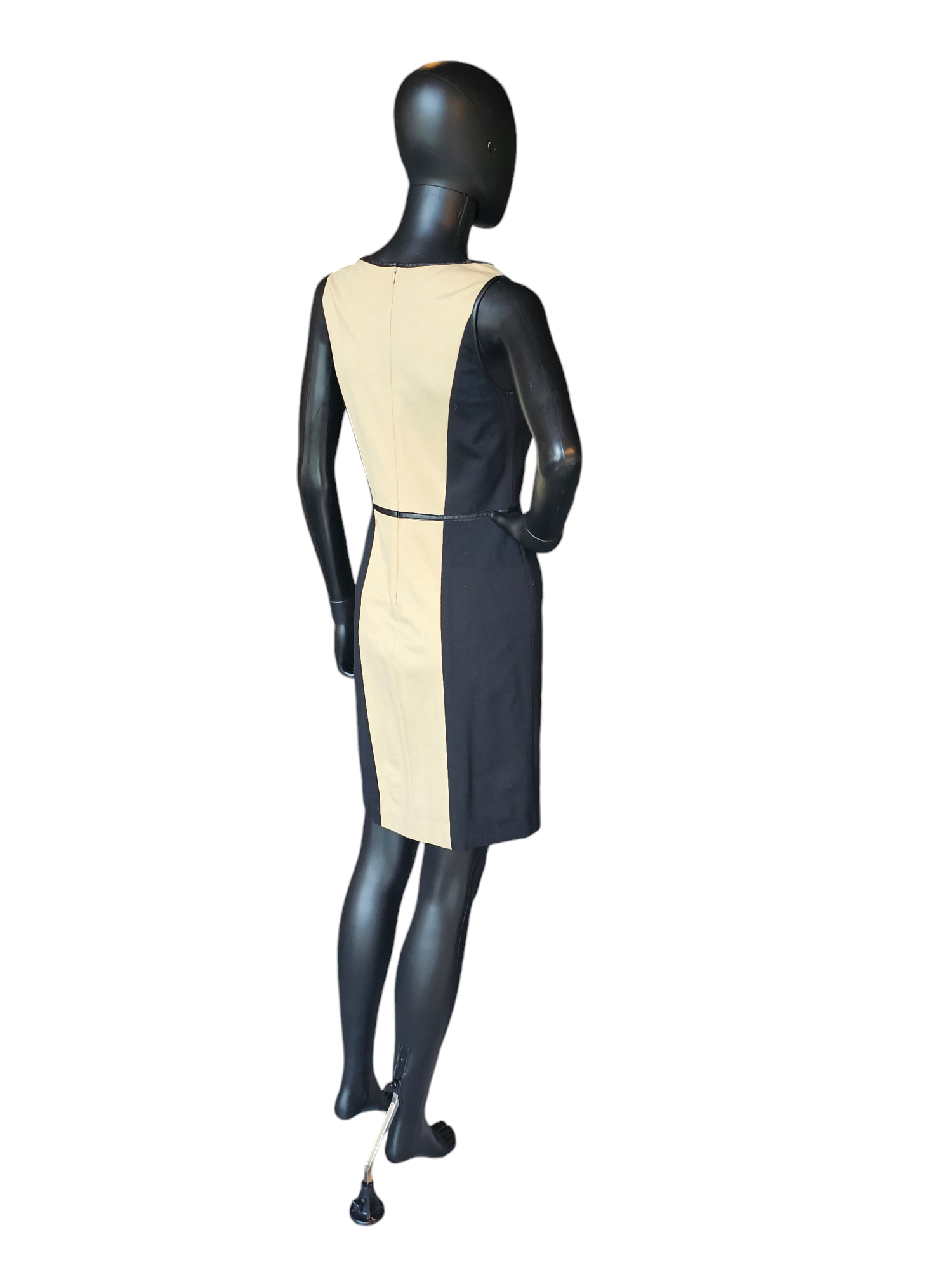 Black/Tan Leather Chevron Sheath Dress - Cynthia Steffe