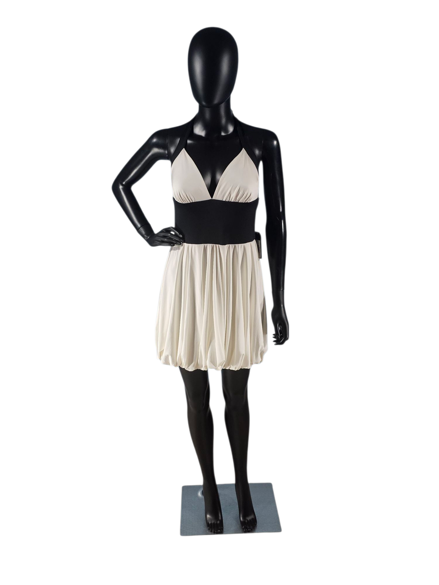 Black/White Jersey Halter Bubble Skirt Cocktail Dress - XXI