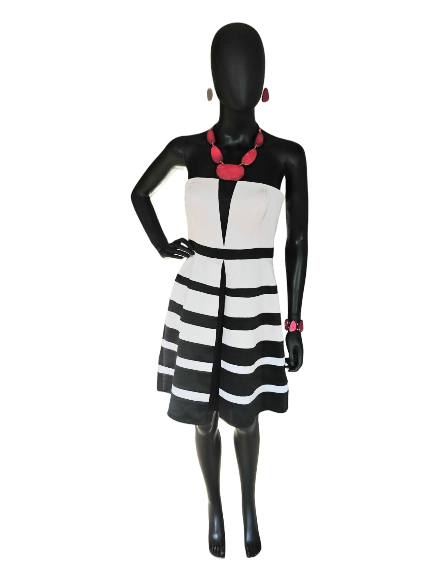 Black/White Stripe Strapless Cocktail Dress / Party Dress