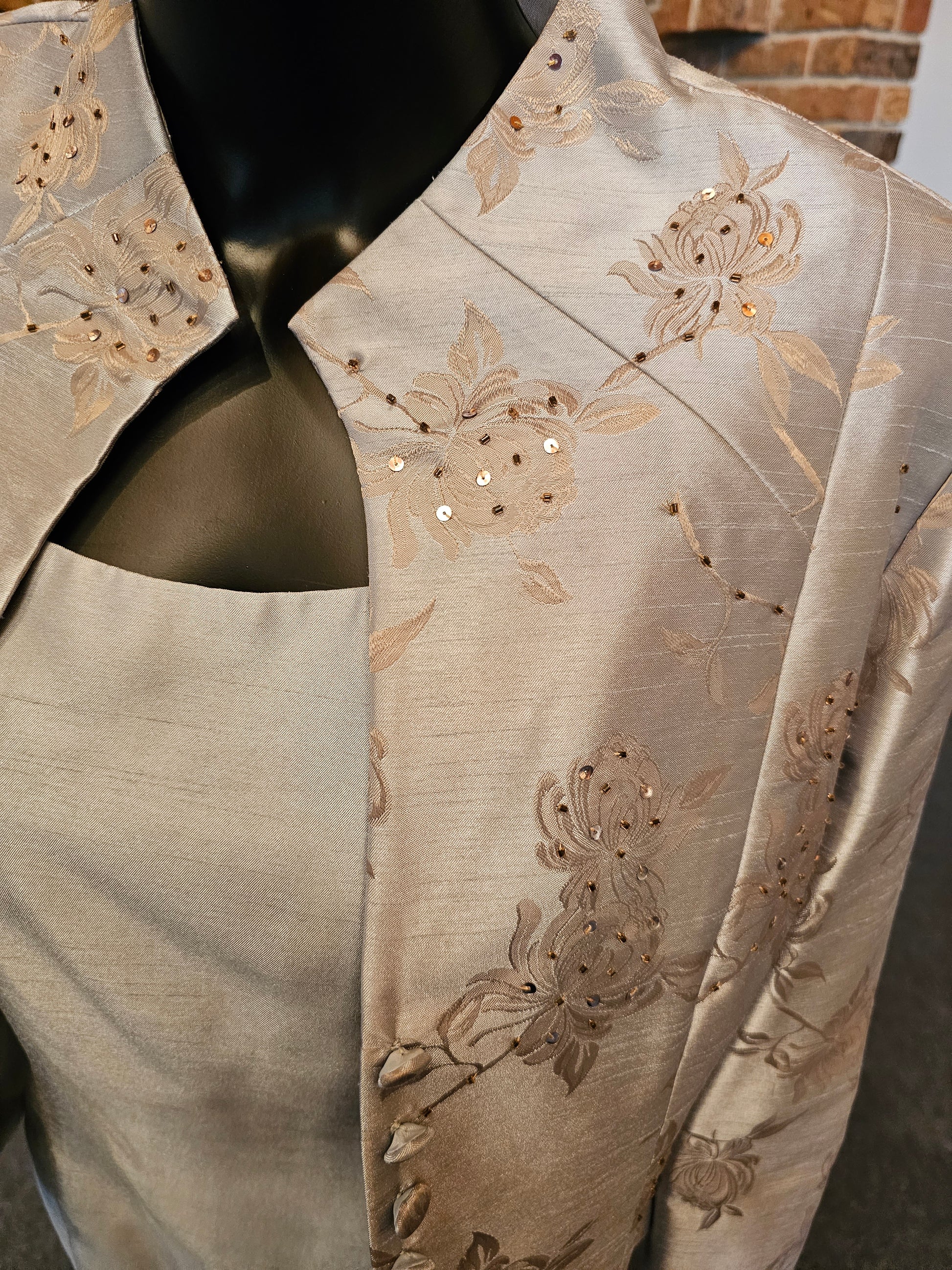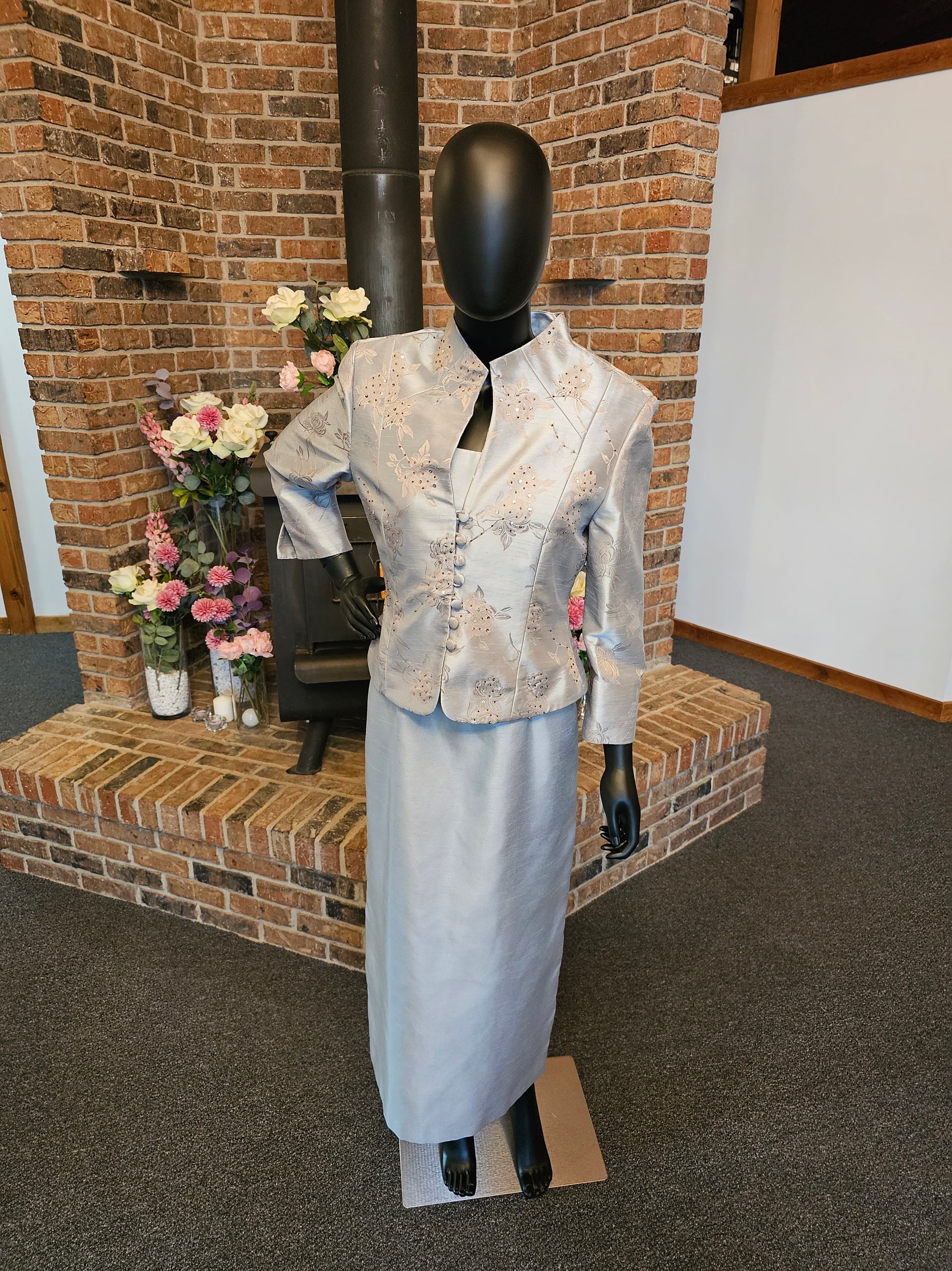 Blue/Silver Jacquard Formal Dress W/ Jacket