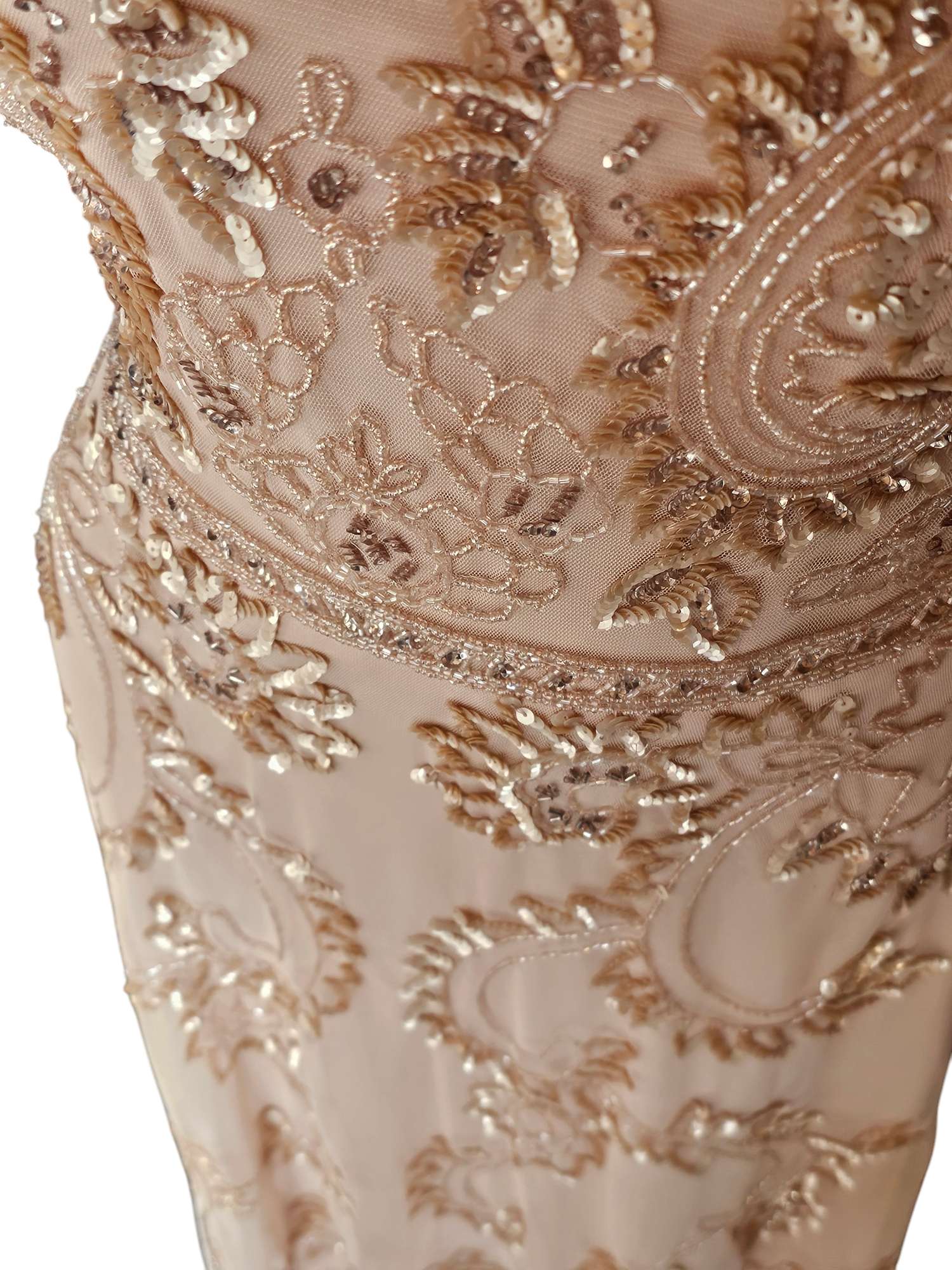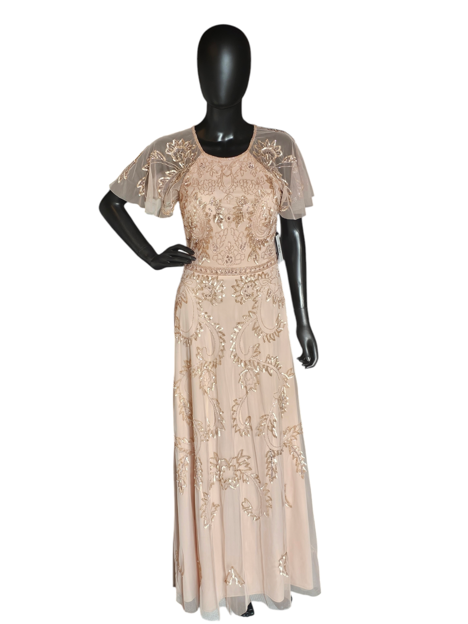 Blush Beaded Flutter Sleeve Formal Gown - Adrianna Papell