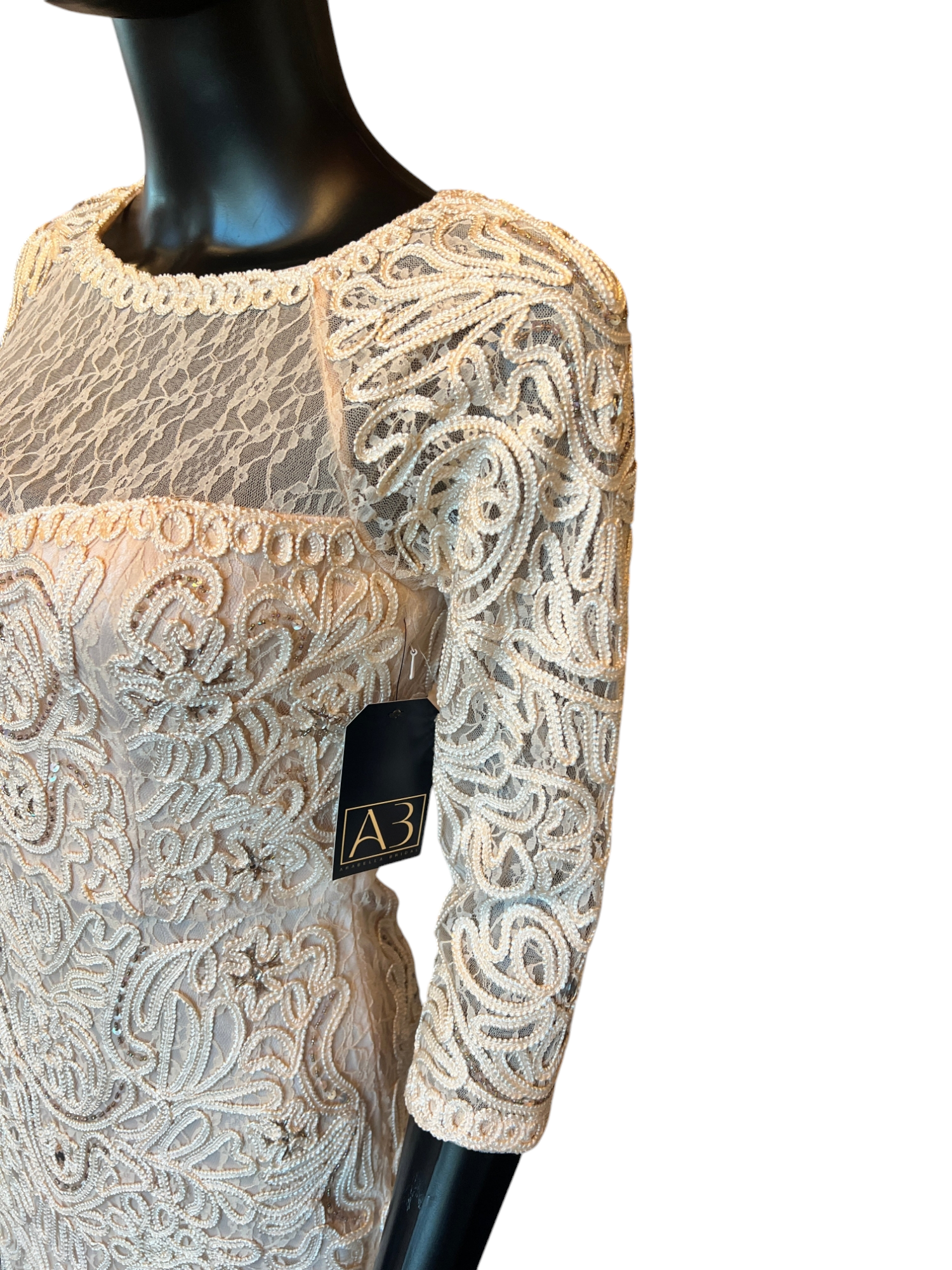Special Attributes: 3D applique sewn over lace. Lots of intricate details.