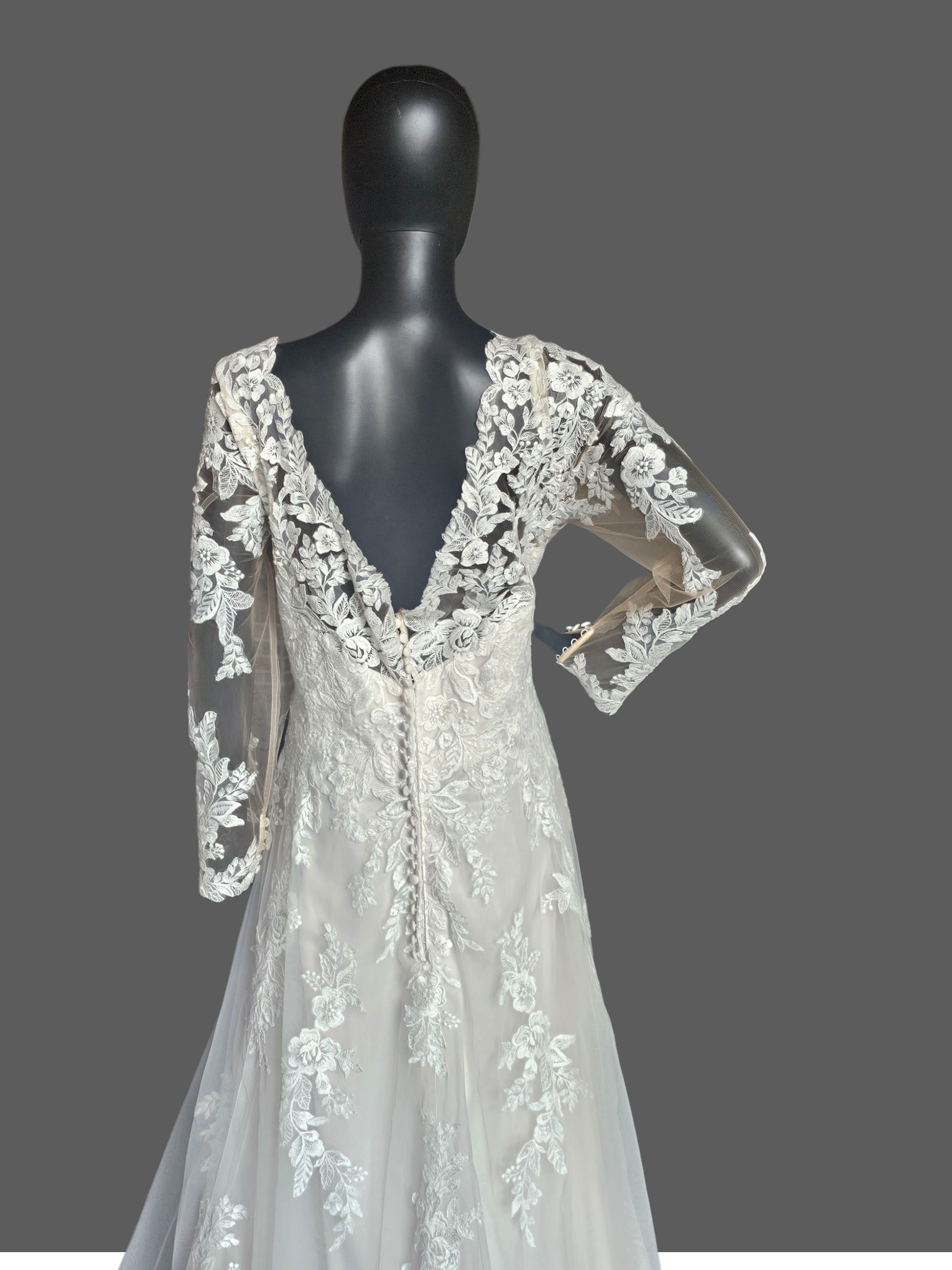 Blush/Ivory Floral Lace Long Sleeve Wedding Gown NWOT - Mori Lee