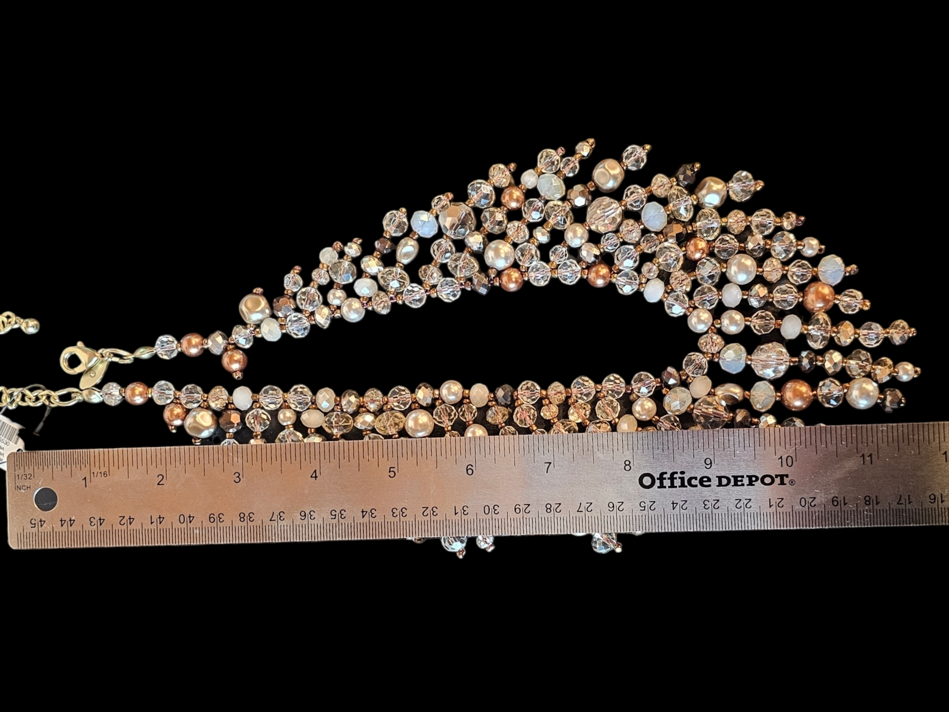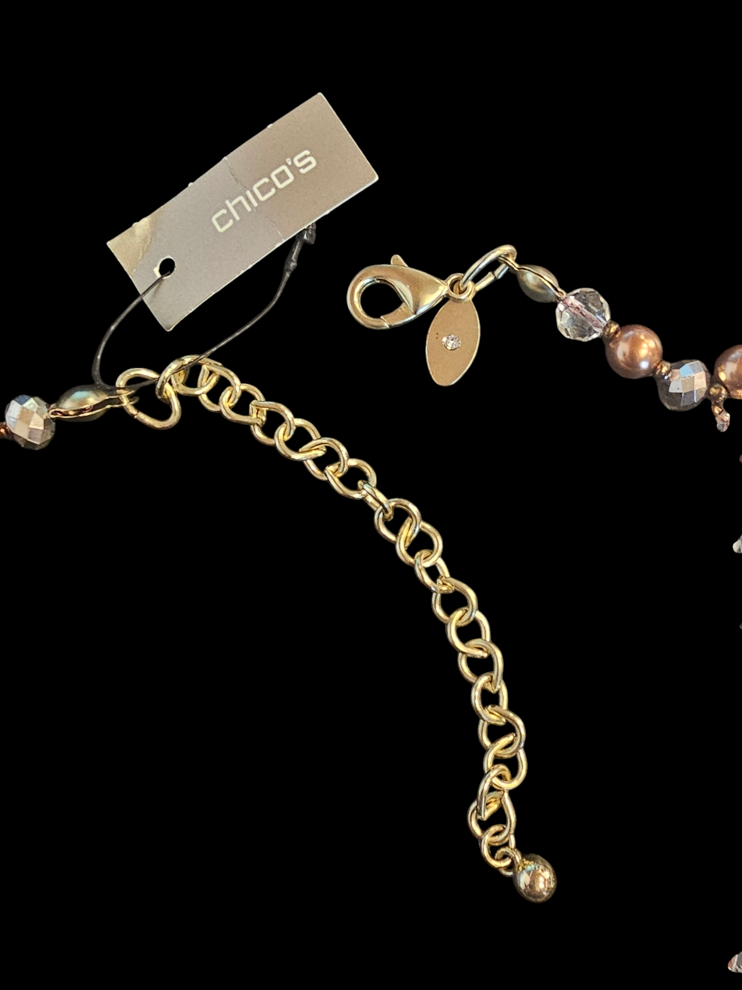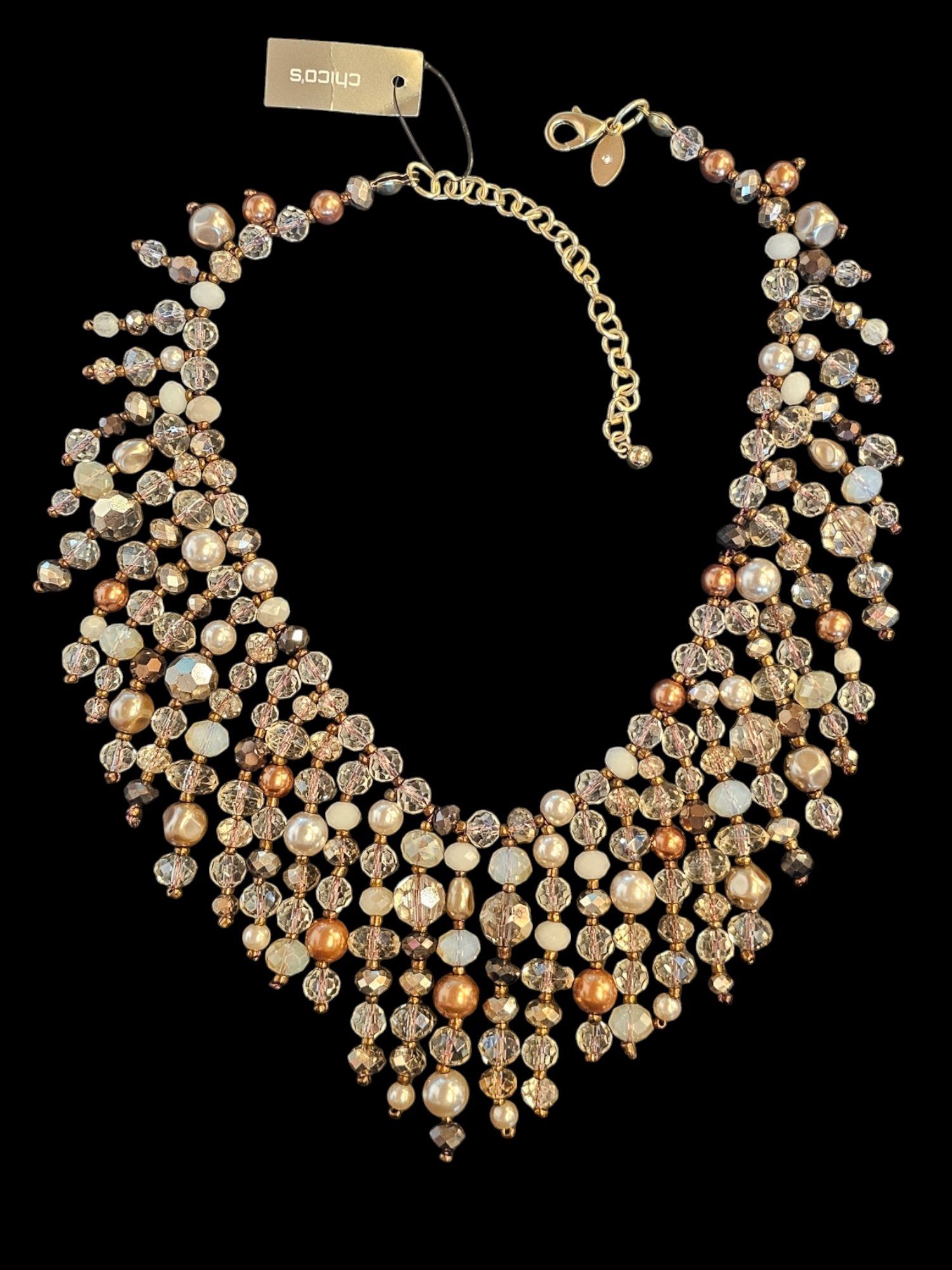 Bronze/Multi Color Bead Fringe Collar Statement Necklace - NWT - Chicos