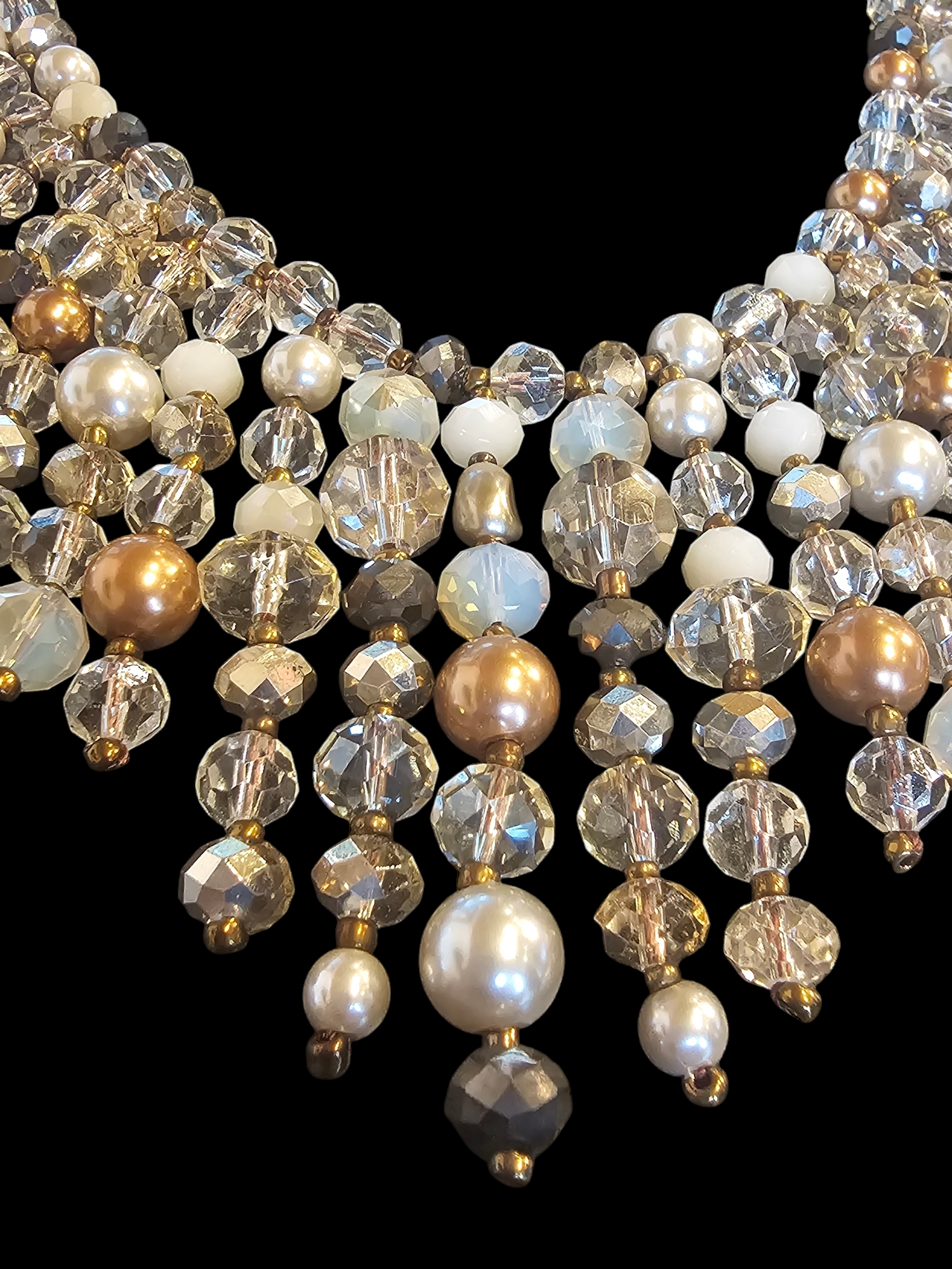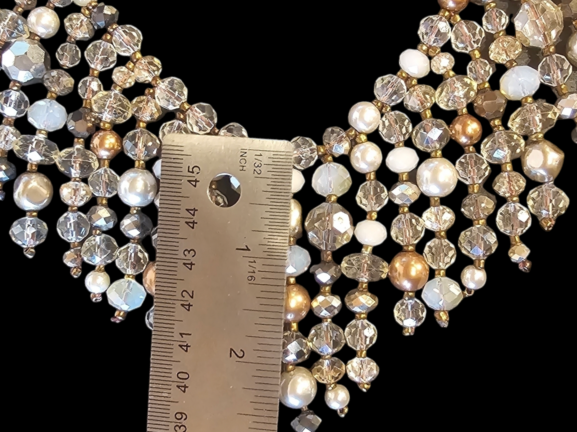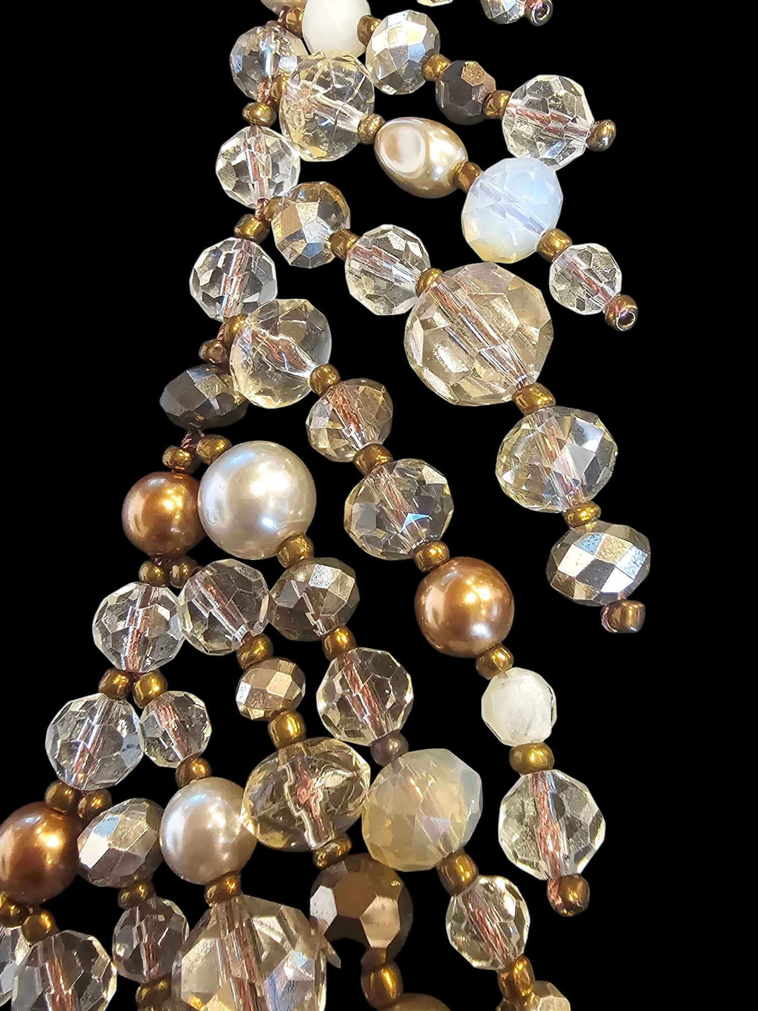 Bronze/Multi Color Bead Fringe Collar Statement Necklace - NWT - Chicos