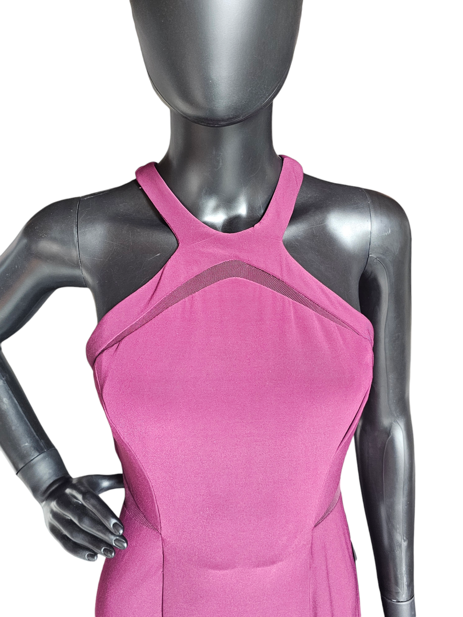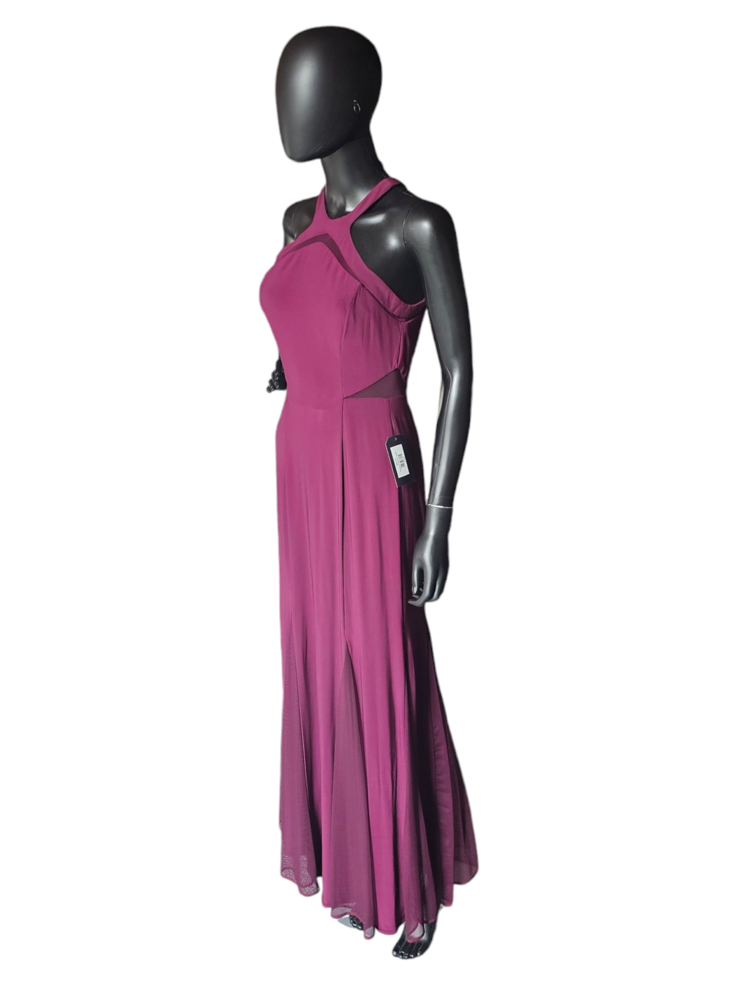 Burgundy Illusion Halter Full Length Formal Gown - Nightway
