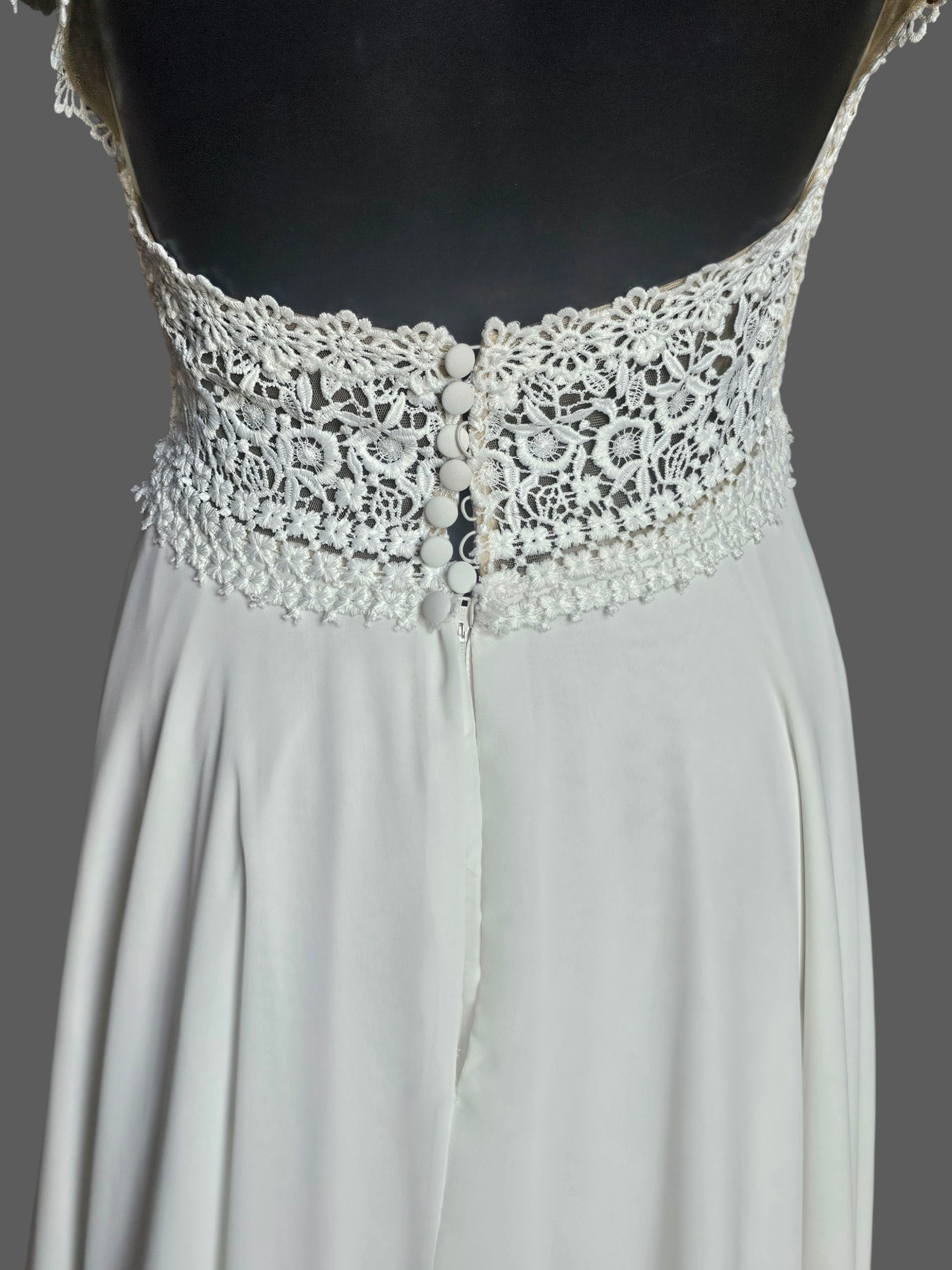 Ivory Cap Sleeve Illusion Bodice Wedding Dress - Lillan West