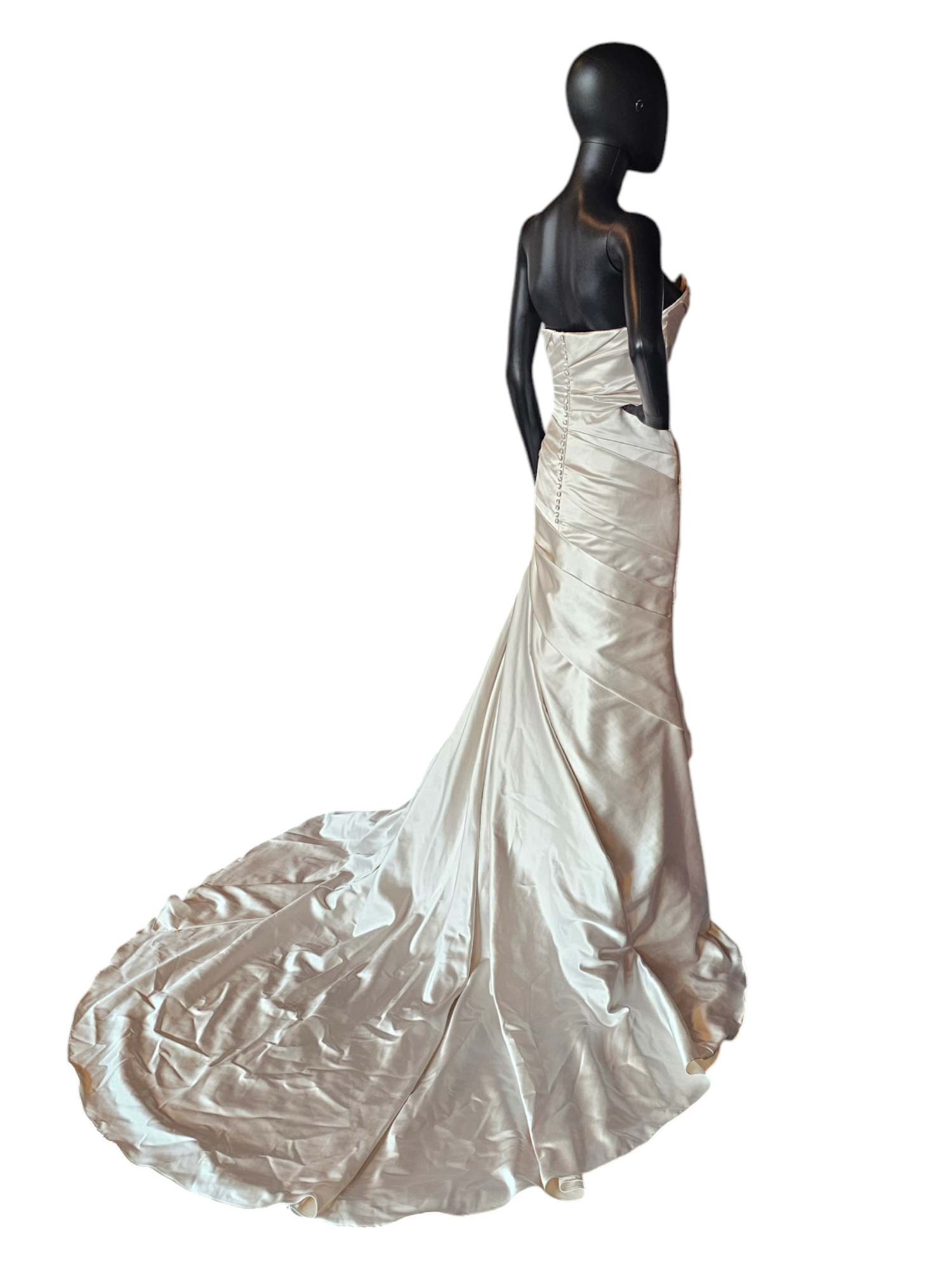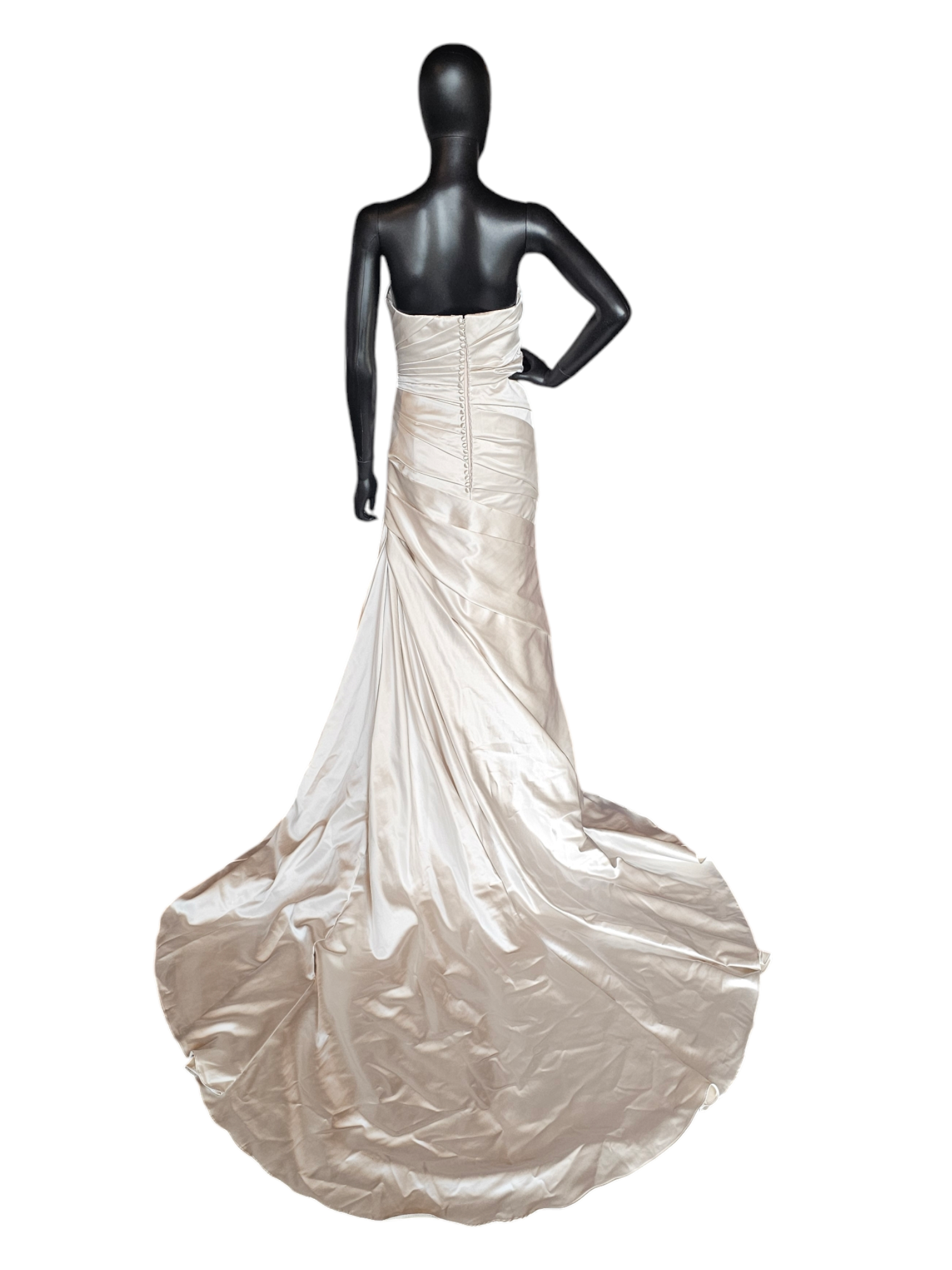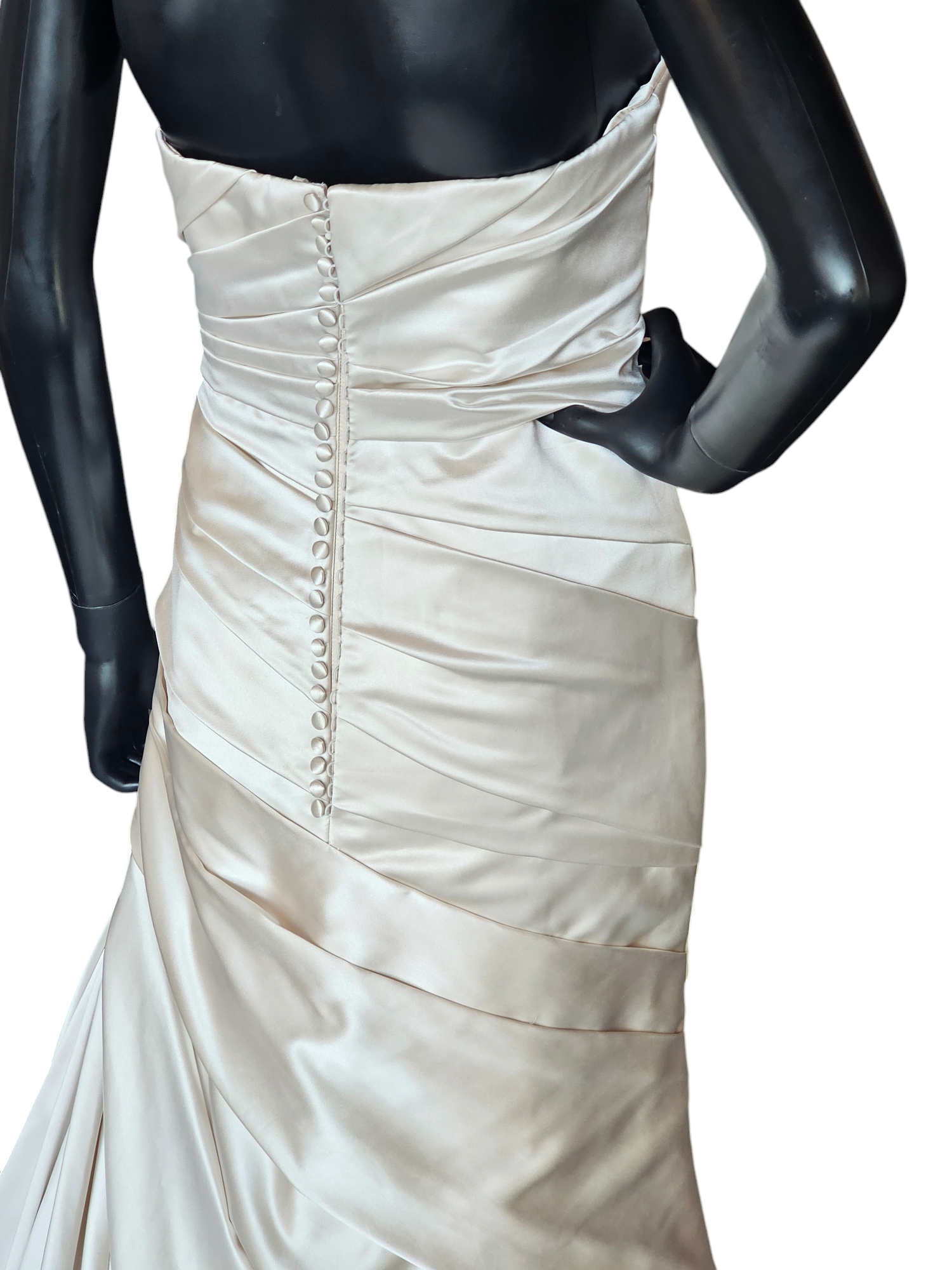 Champagne Satin Side Ruched Wedding Gown - La Sposa