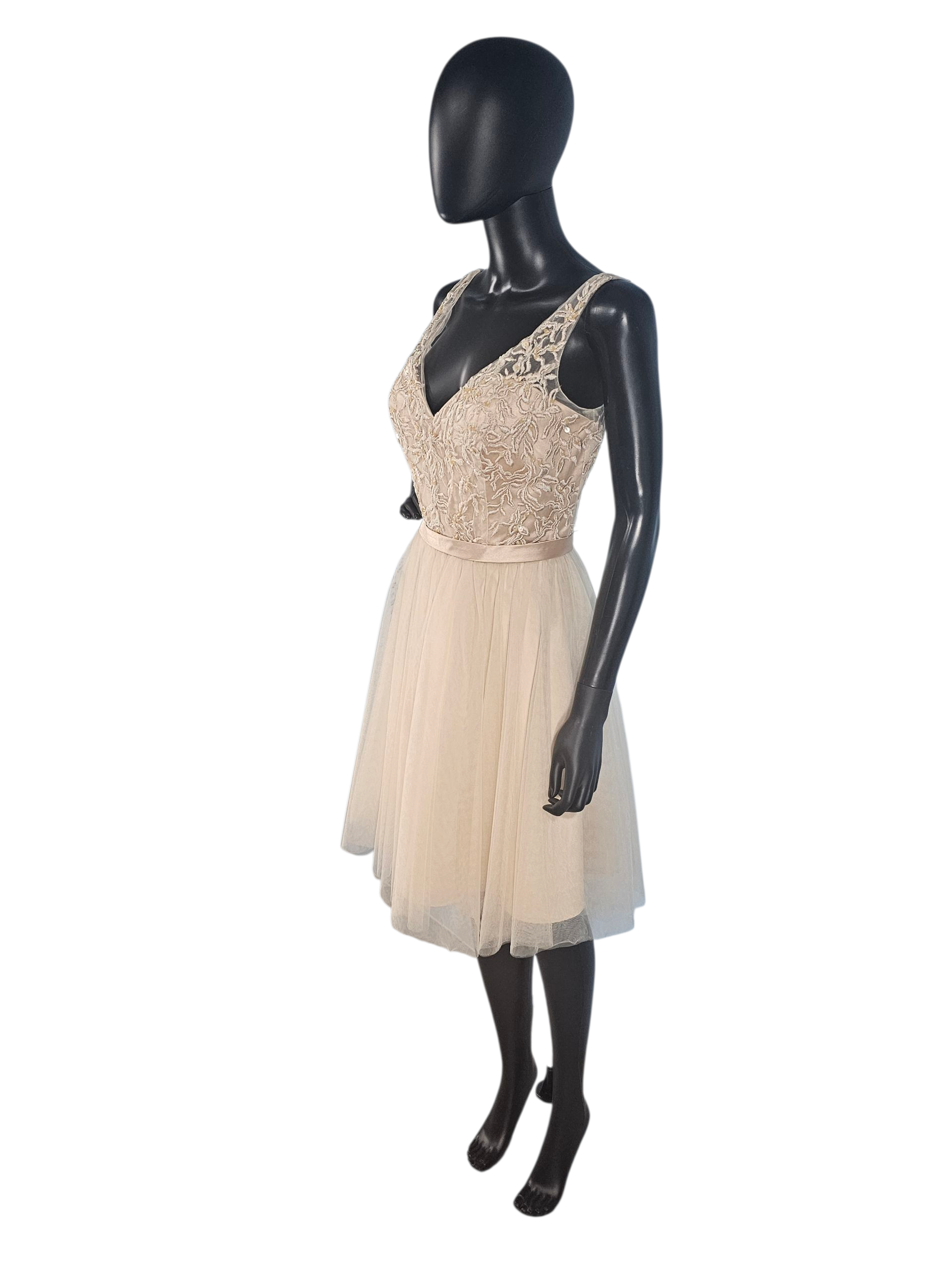 Champagne V-Neck Embroidered Formal Dress - Mori Lee