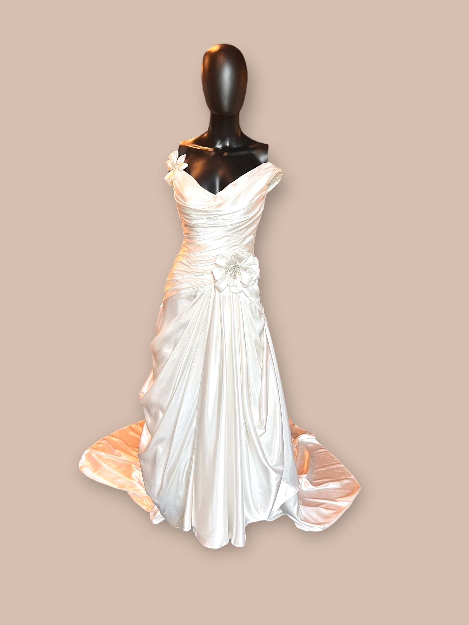 Charmeuse V-Neck Side Ruched Wedding Gown