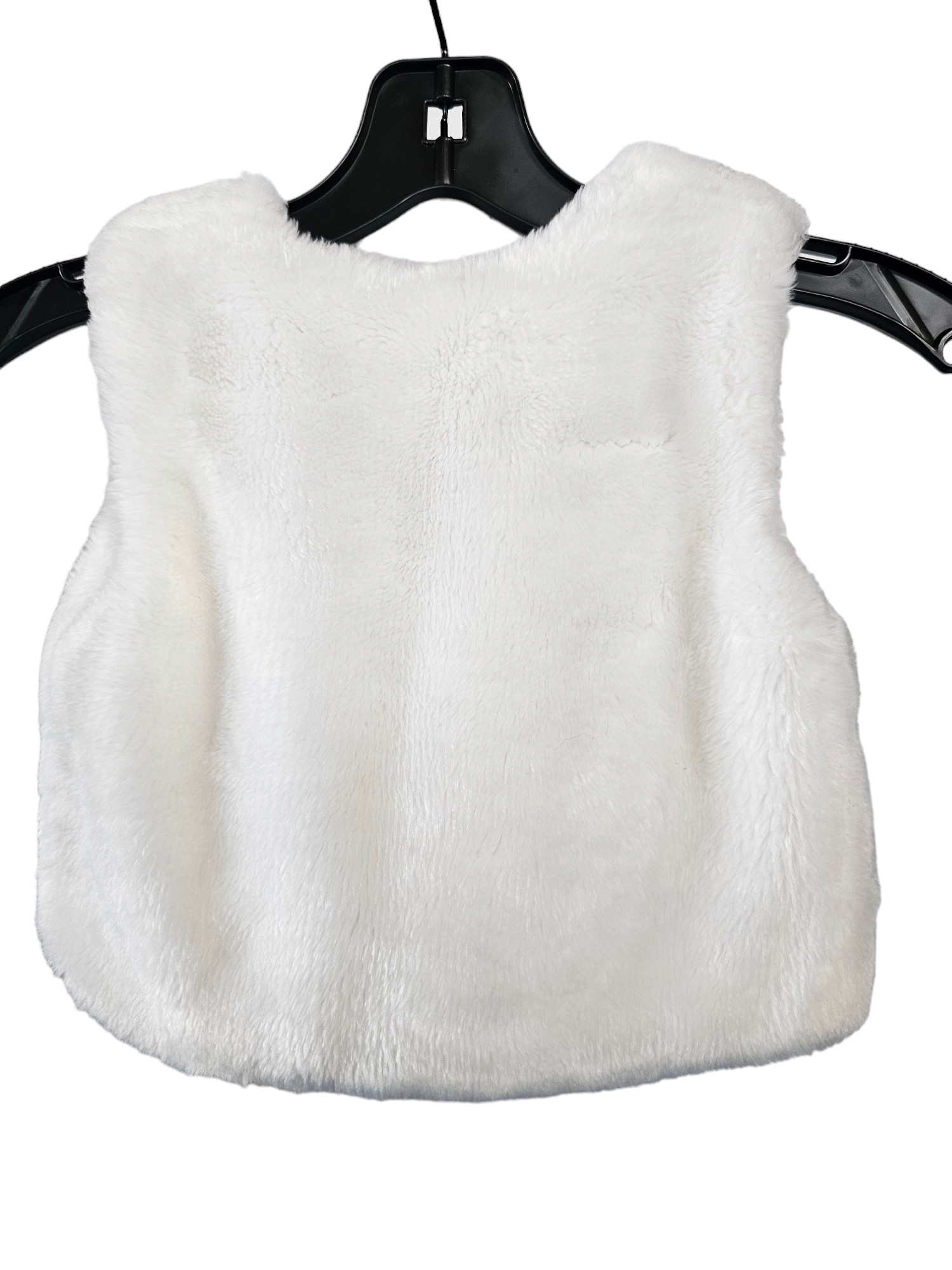 Enhance your child's wardrobe with our Child's White Fur Vest. This adorable vest is the perfect addition to any outfit, offering warmth and style with its white faux fur fabric. The white ribbon closure at the neck adds a touch of sophistication to your child's look.