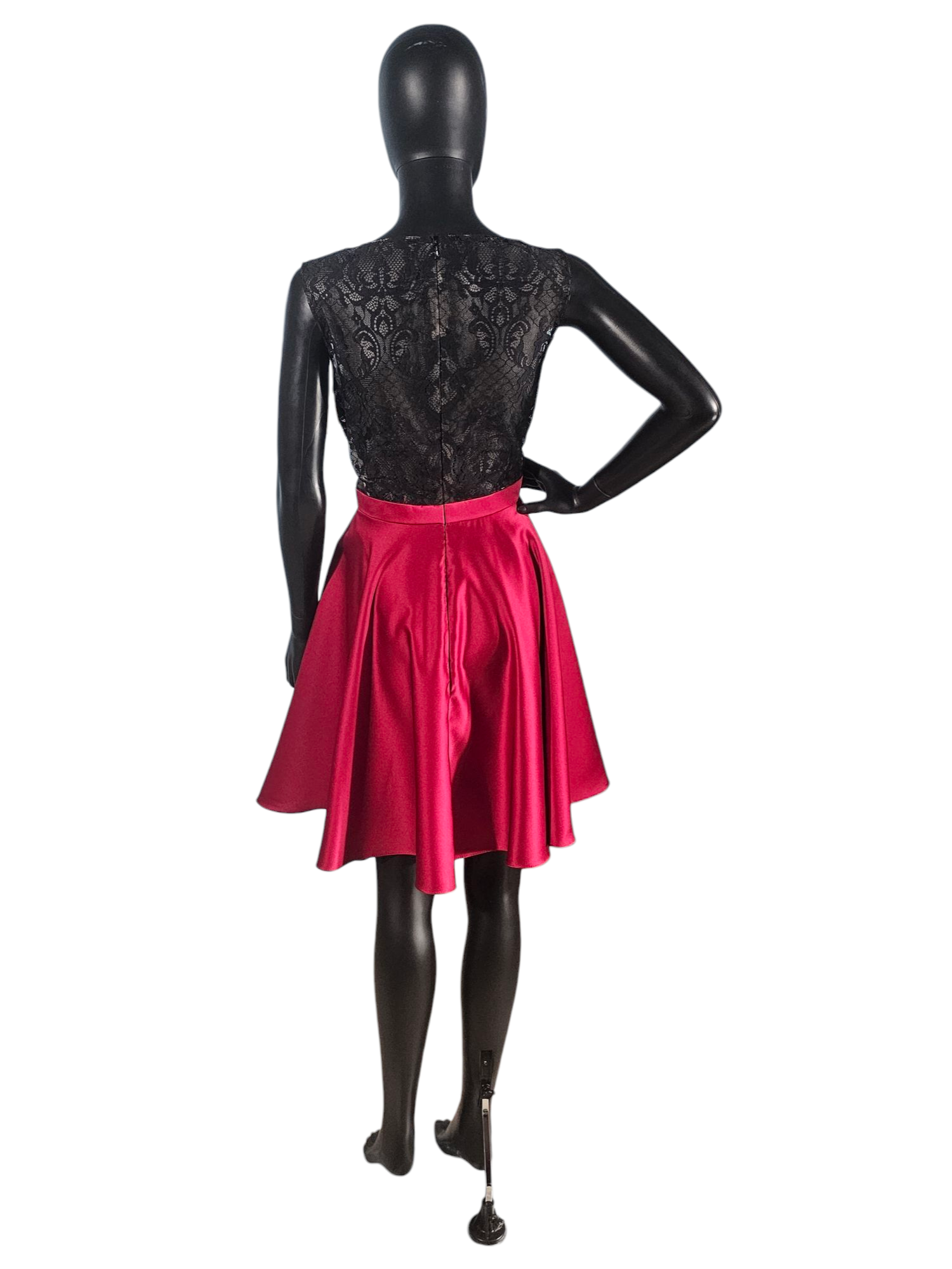 Claret Satin/Black Lace Illusion Back A-Line - Da Vinci