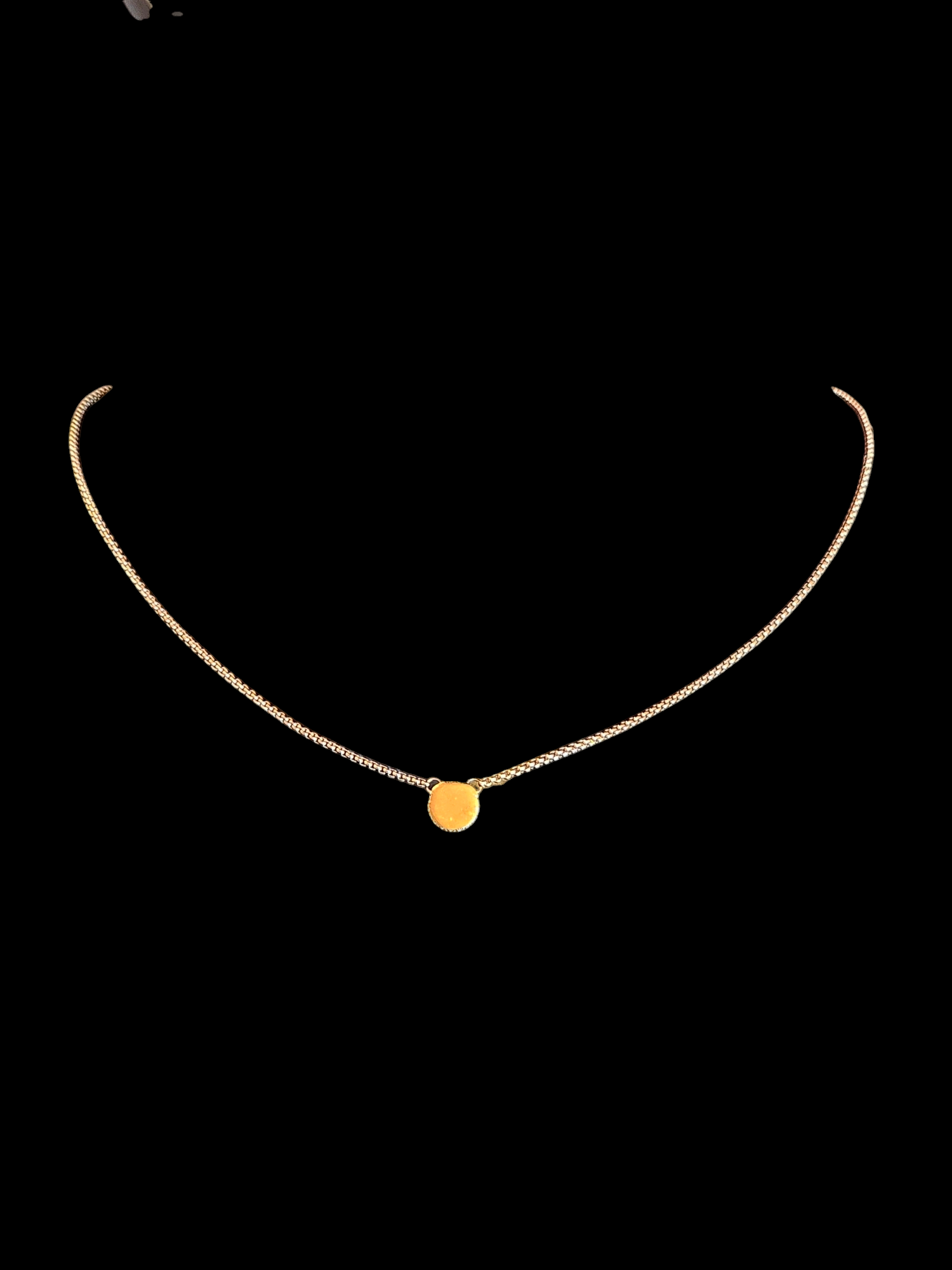 Super cute minimalist collar necklace. Copper chain and round pendant with Itty bitty crystals set along the edge.