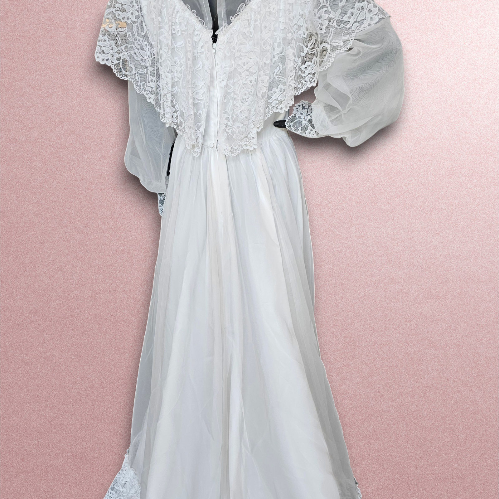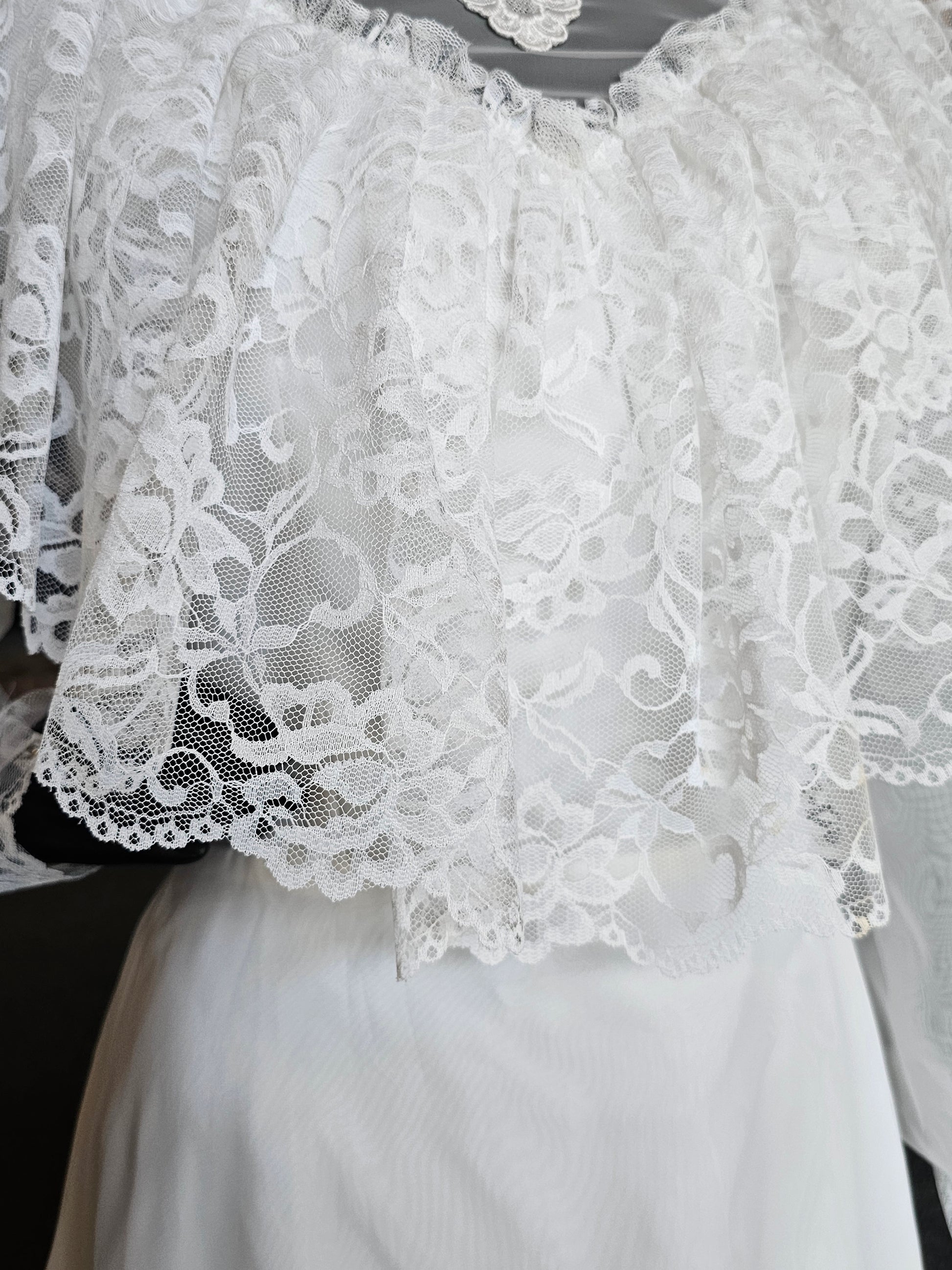Vintage 70s Lace Bandeau Chiffon High-Collar Wedding Gown