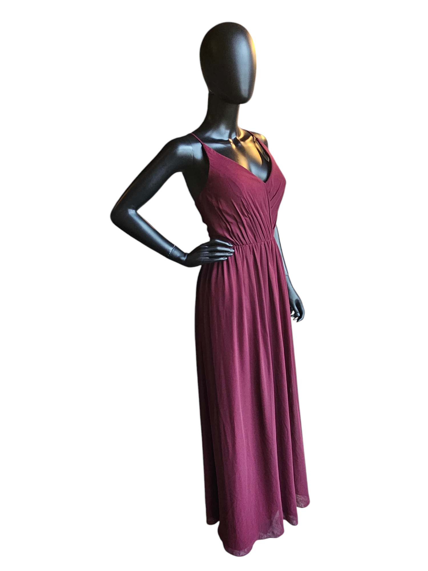 Cranberry Chiffon Spaghetti Strap - Bill Levkoff