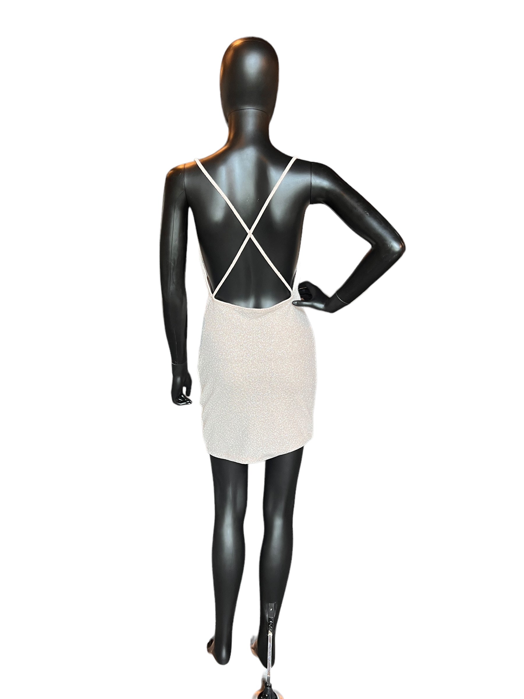 Cream/Silver Shimmer Cross Back Cocktail Dress